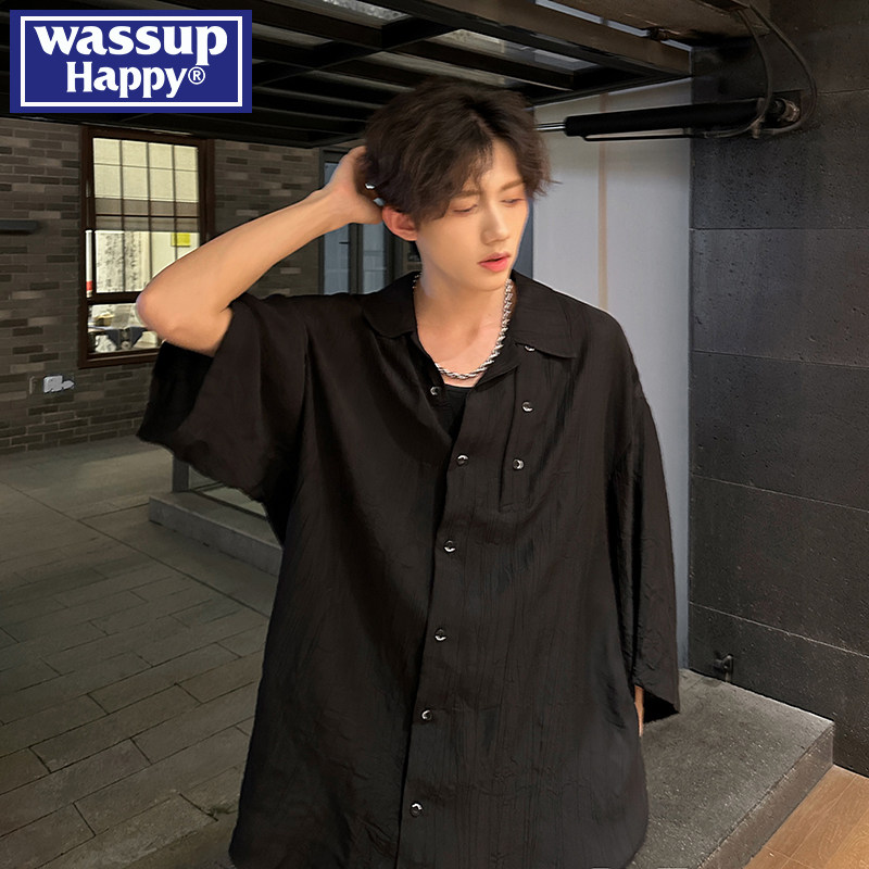 wassup happy肌理感短袖衬衫男夏季薄款冰丝半袖宽松潮牌凉感外套
