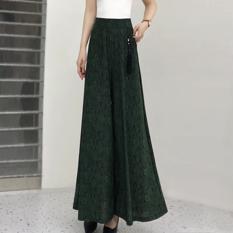 新中式提花阔腿裤裙裤女夏季新款大码高腰冰爽流苏休闲裤垂坠长裤