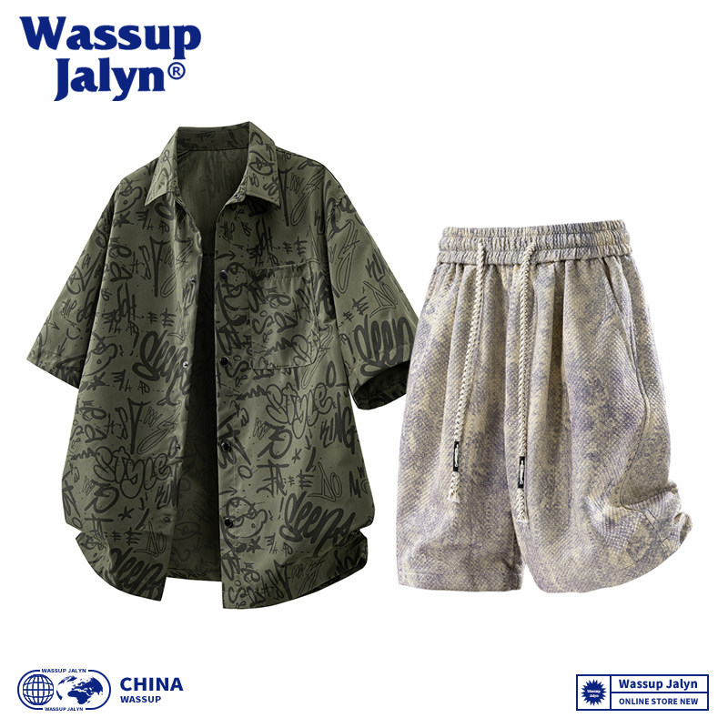 WASSUP JALYN潮牌套装男夏季短袖衬衫男士轻奢运动短裤男款两件套