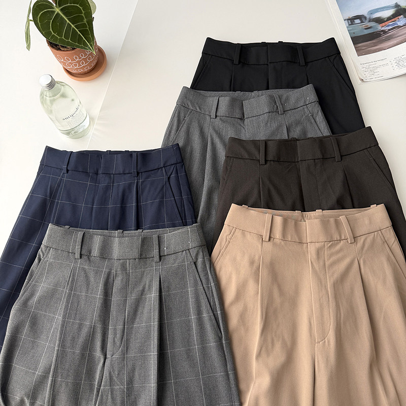 北野U家时髦阔腿裤女装打褶宽腿裤(素色裤内档长68-70)BY450639