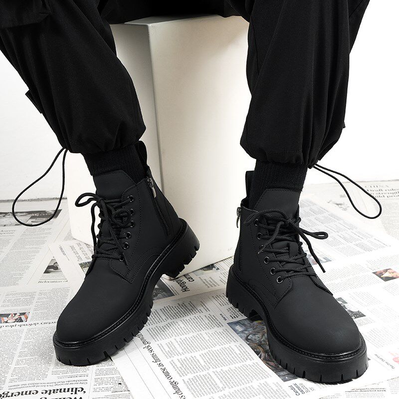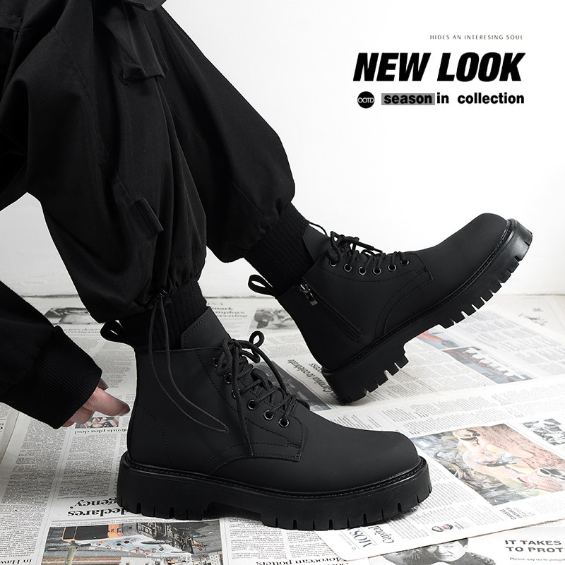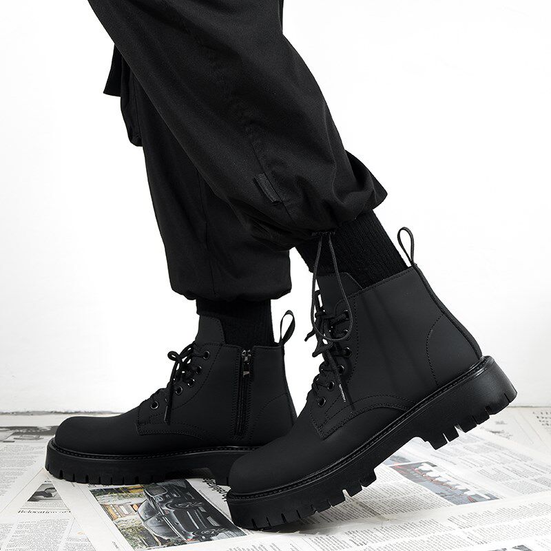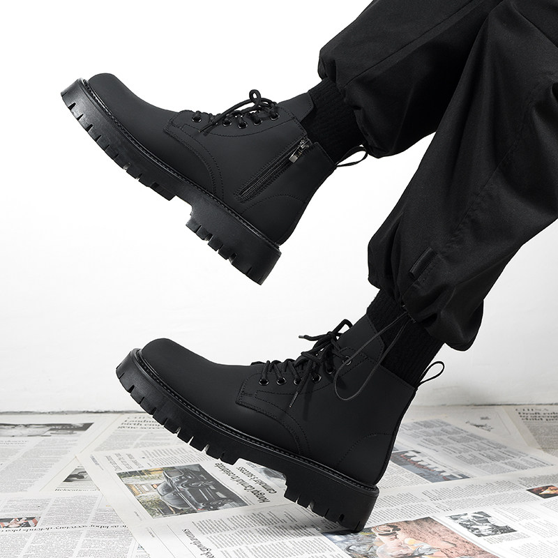 马丁靴男款2024新款黑色高帮皮鞋英伦风复古厚底增高中低帮皮靴子
