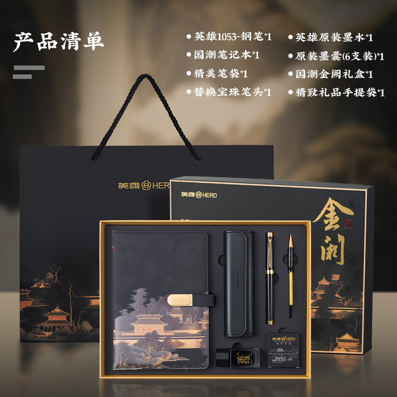 --------------------- 英雄钢笔国风复古金阙A5笔记本国潮记事本高档优盘文创礼盒套装商务成人男士签字笔送礼品礼物刻字定制logo --------------------- --------------------- 【原价】237元 【券后价】188元