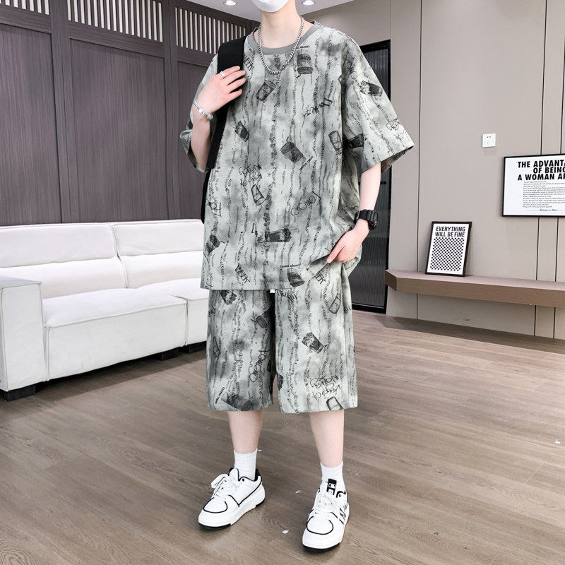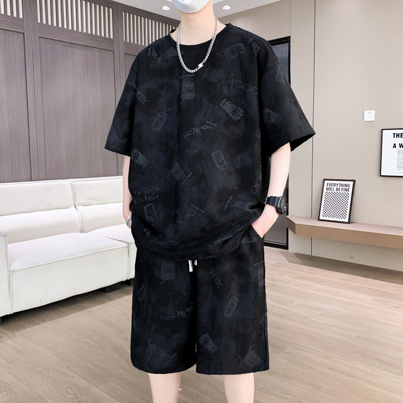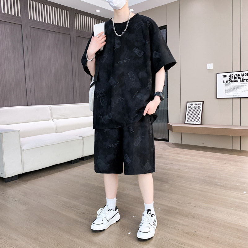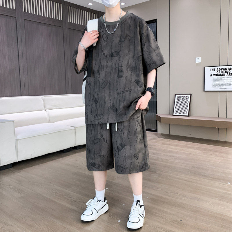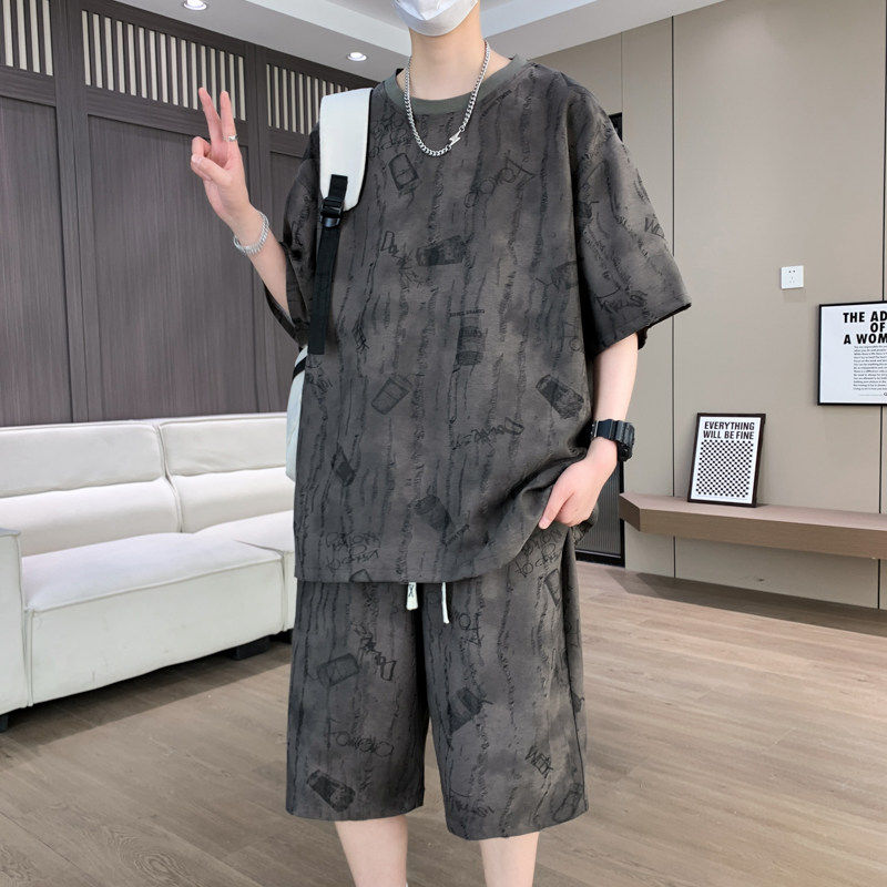 2026新款冰丝凉感短袖T恤男士夏季潮牌短裤夏装t男生酷帅穿搭套装