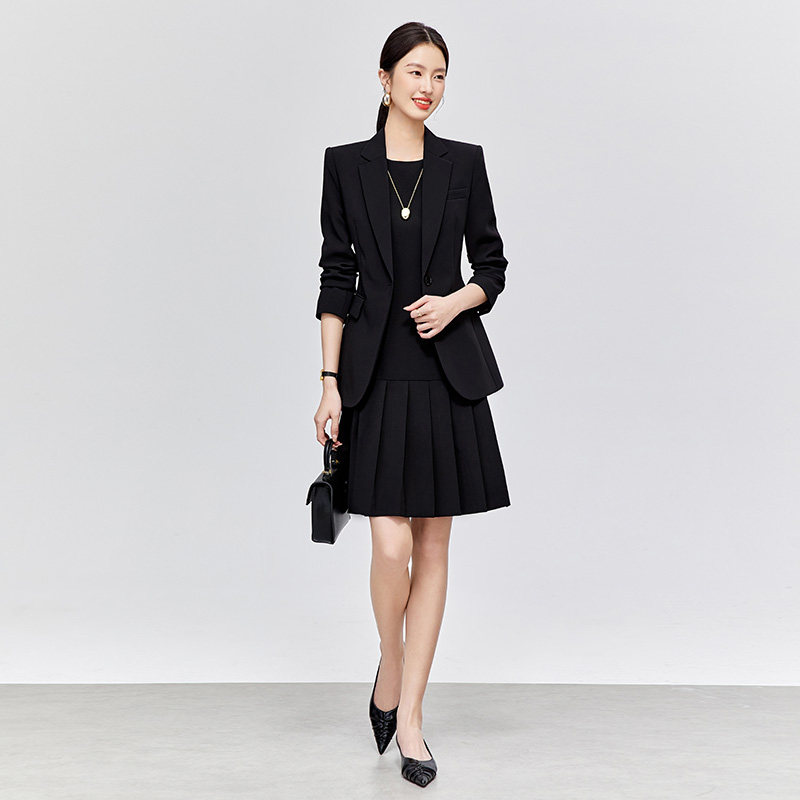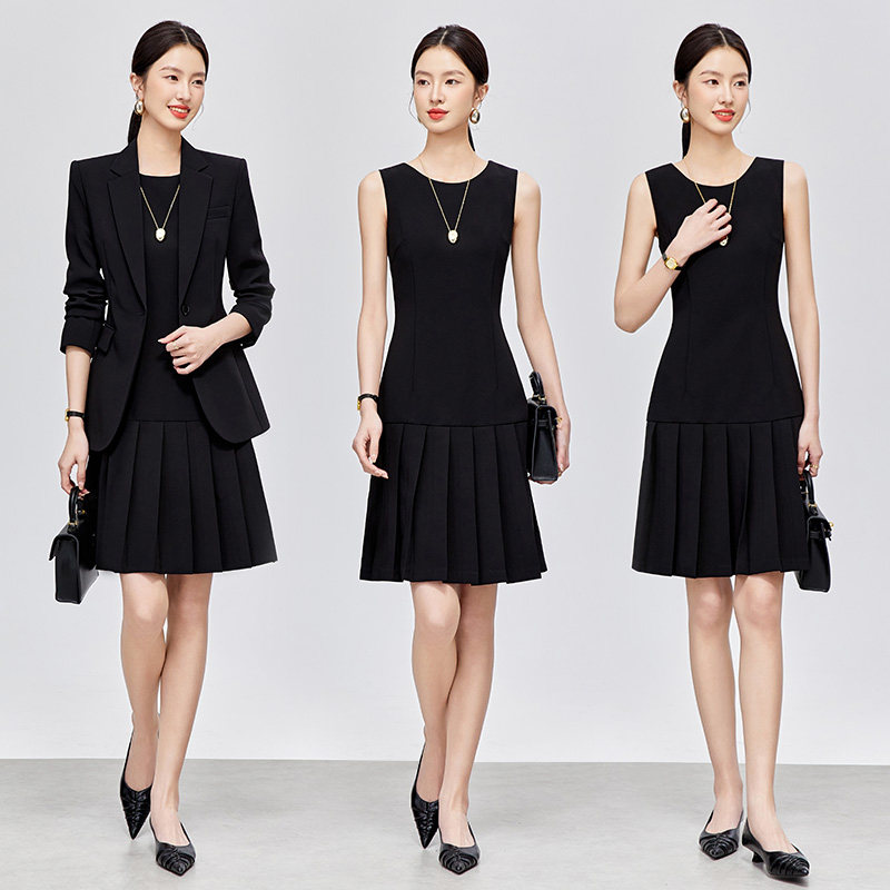2026新款爆款气质干练套装女黑色西装上衣百褶连衣裙套裙高级名媛