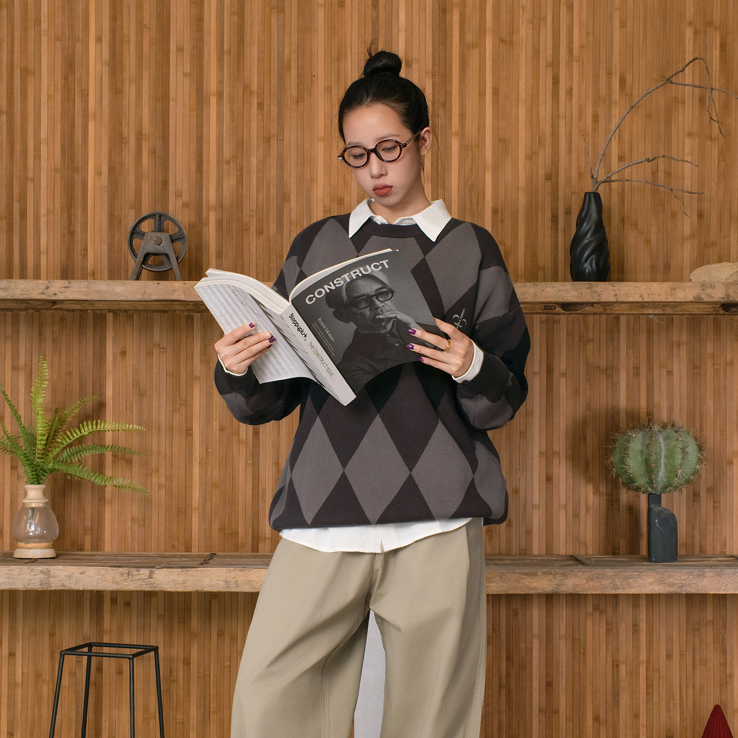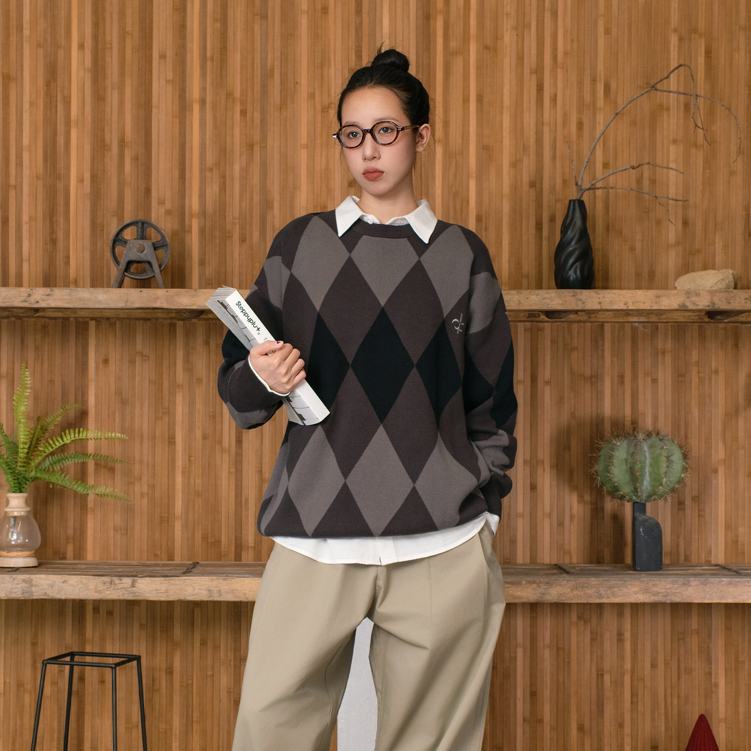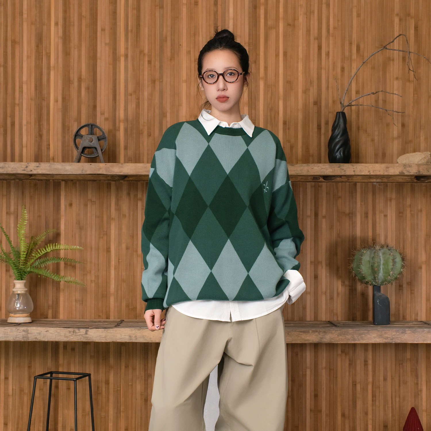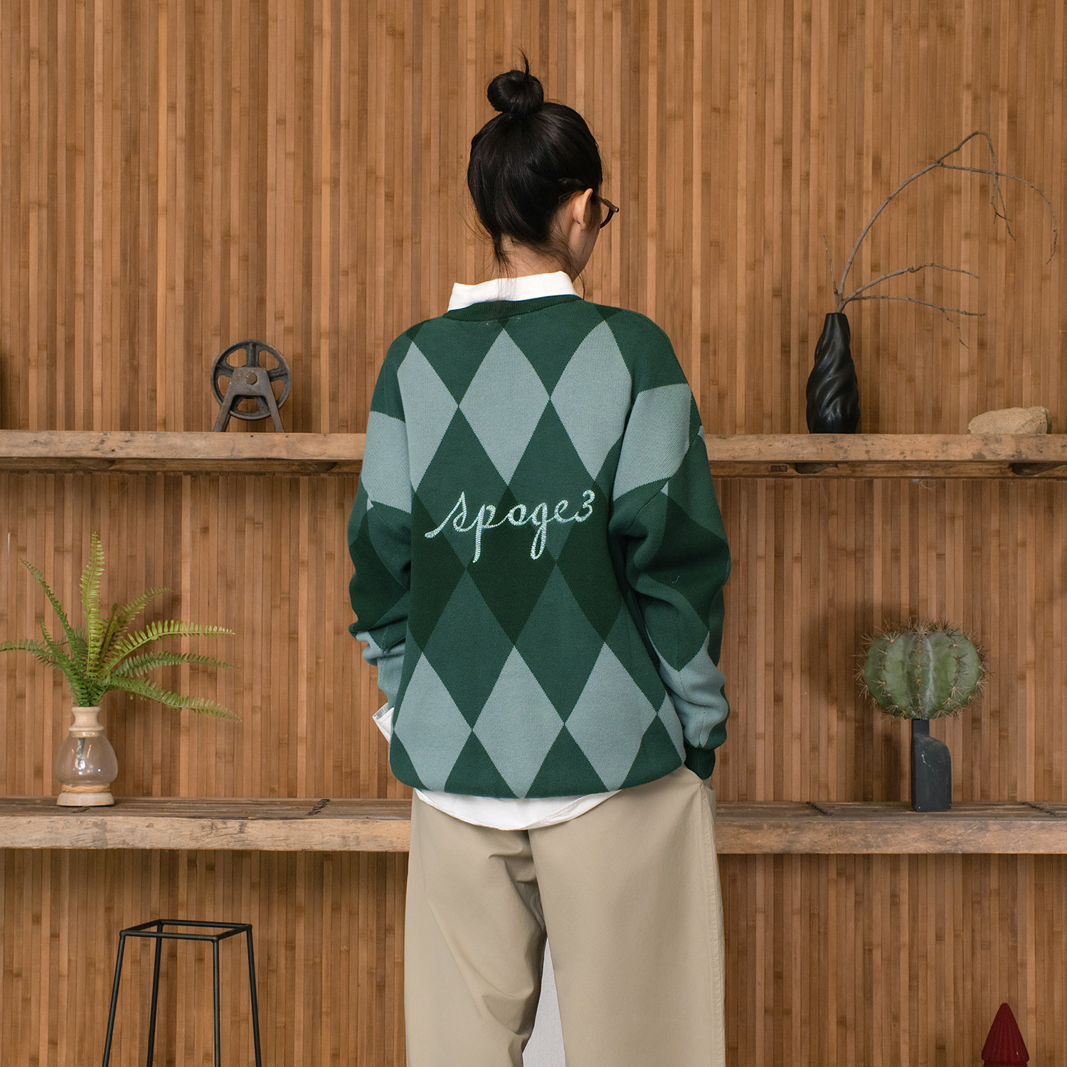 --------------------- APOGE3阿保机 菱形格圆领毛衣男冬季潮牌宽松格子针织衫刺绣情侣 【原售价】239元 【现售价】175元 【推荐理由】
