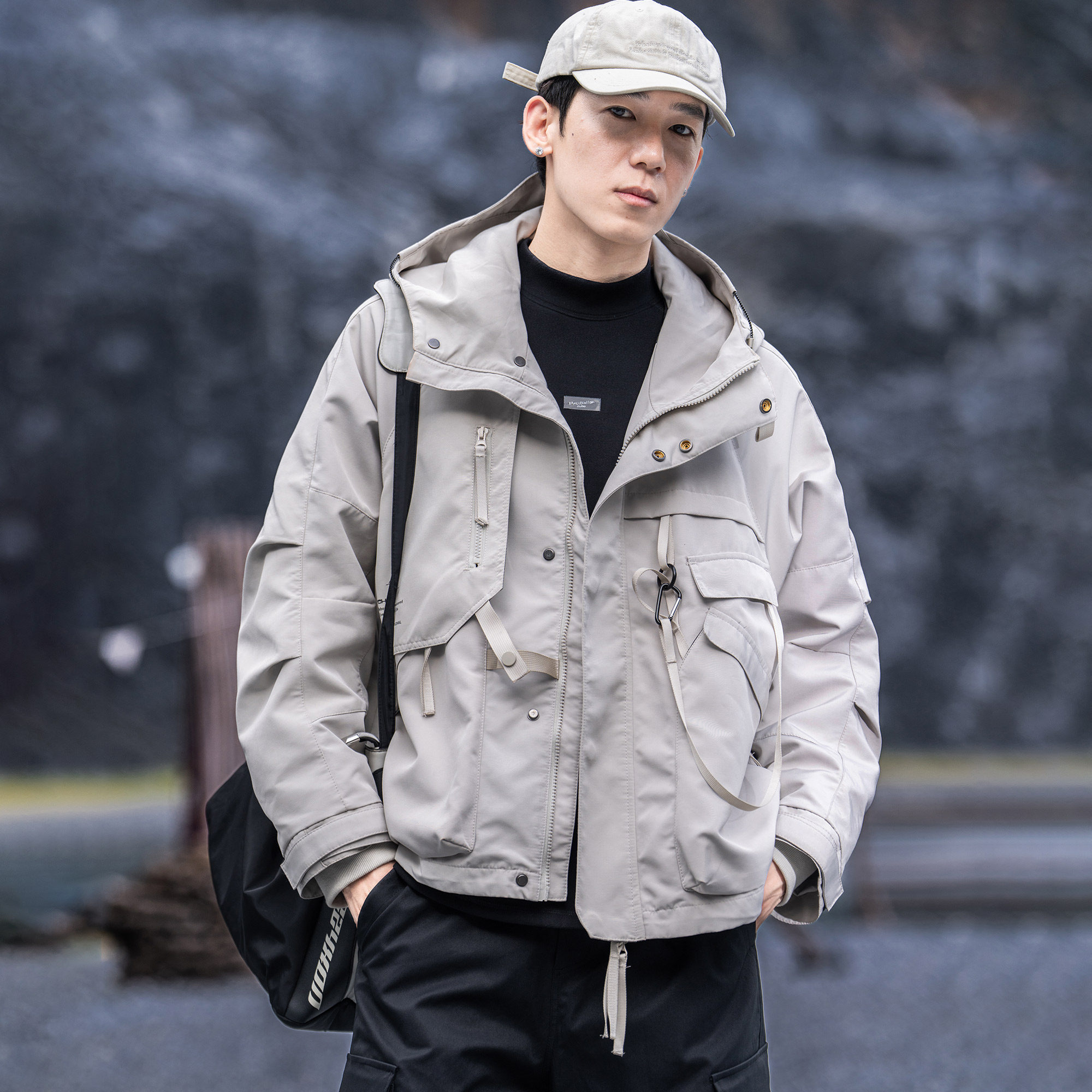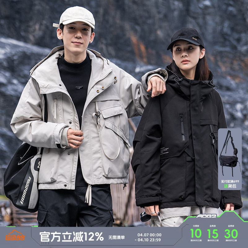 AOGZ户外冲锋衣工装外套男女三合一机能连帽秋冬新款潮牌美式夹克