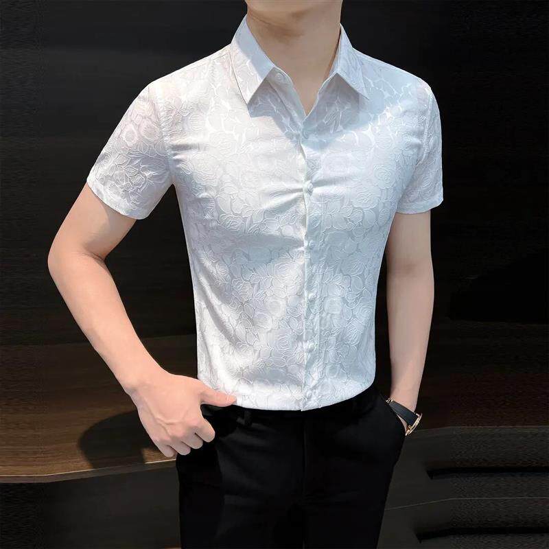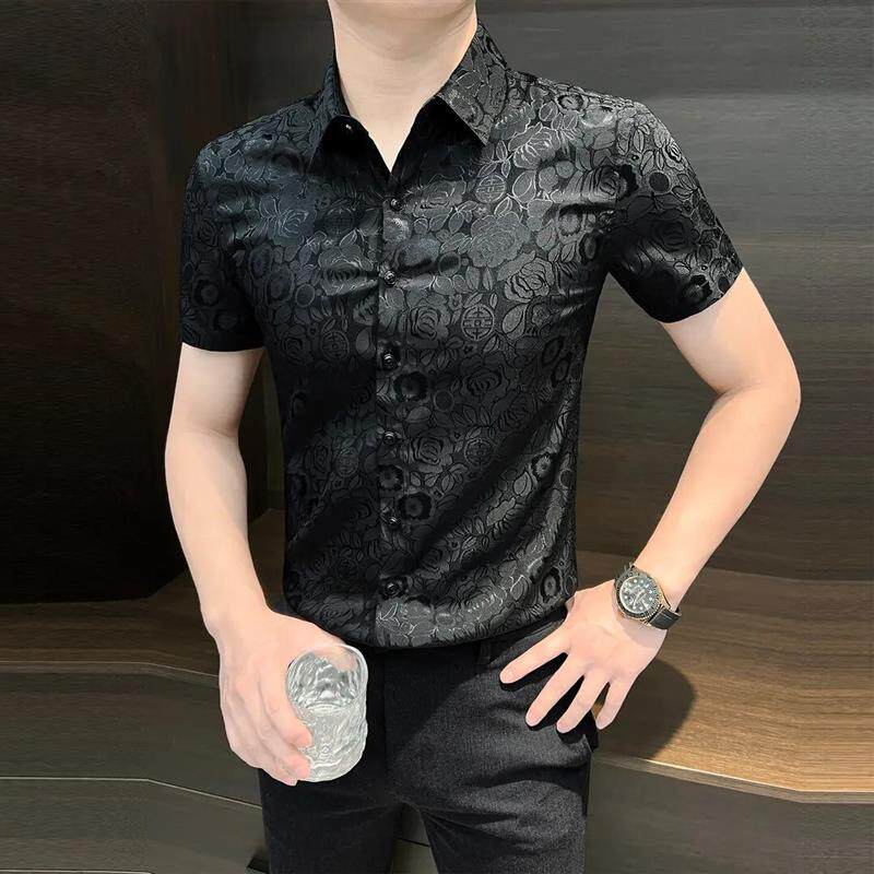 高端轻奢国风花衬衫男痞帅高级感夏季冰丝薄款网红国潮印花衬衣