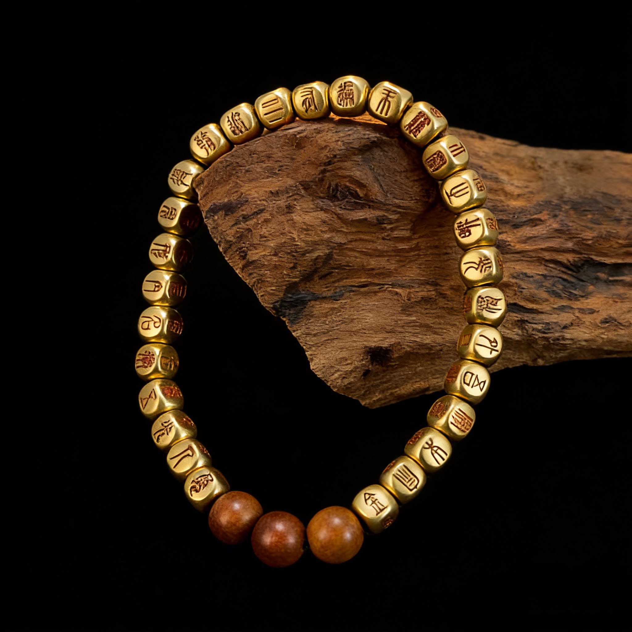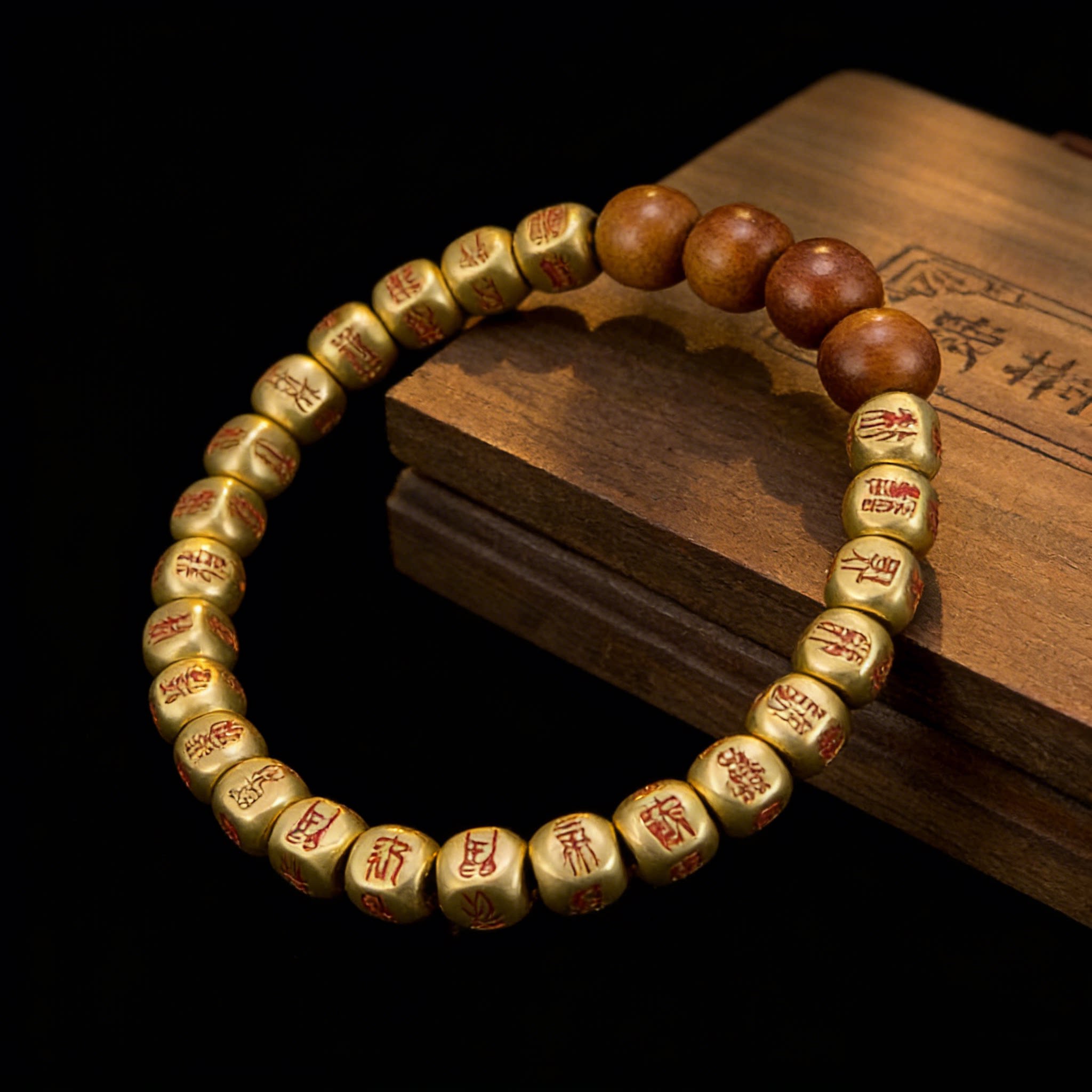 「道系」原创正宗纯铜金光咒手串朱砂描红配珠手链护身符