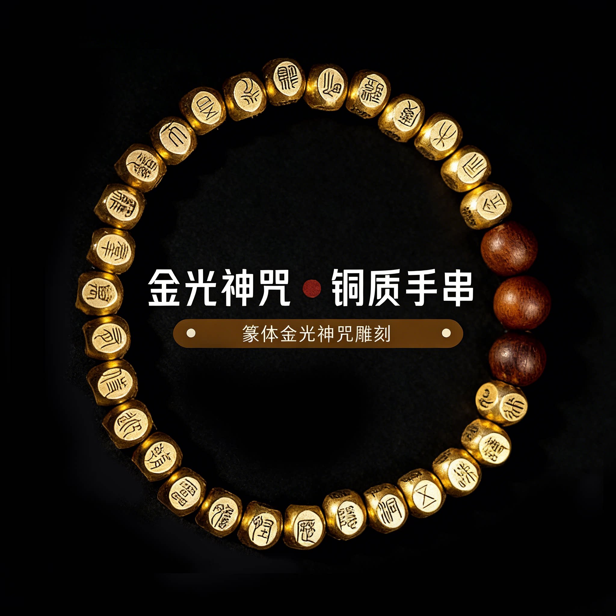 --------------------- 「道系」原创正宗纯铜金光咒手串朱砂描红配珠手链护身符 【原售价】67.6元 【现售价】60.8元 【推荐理由】