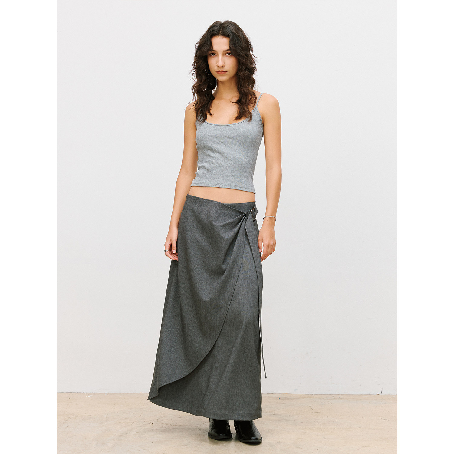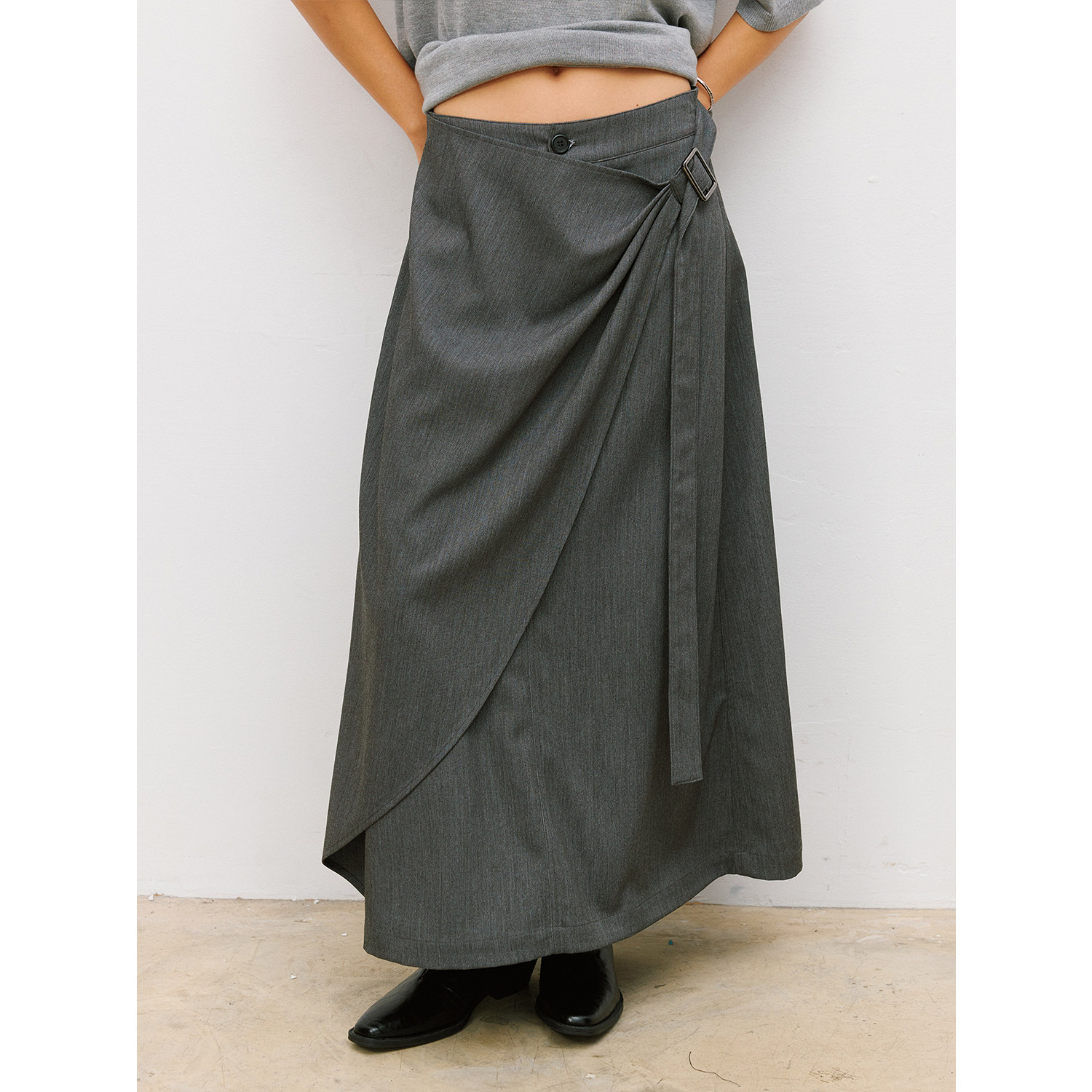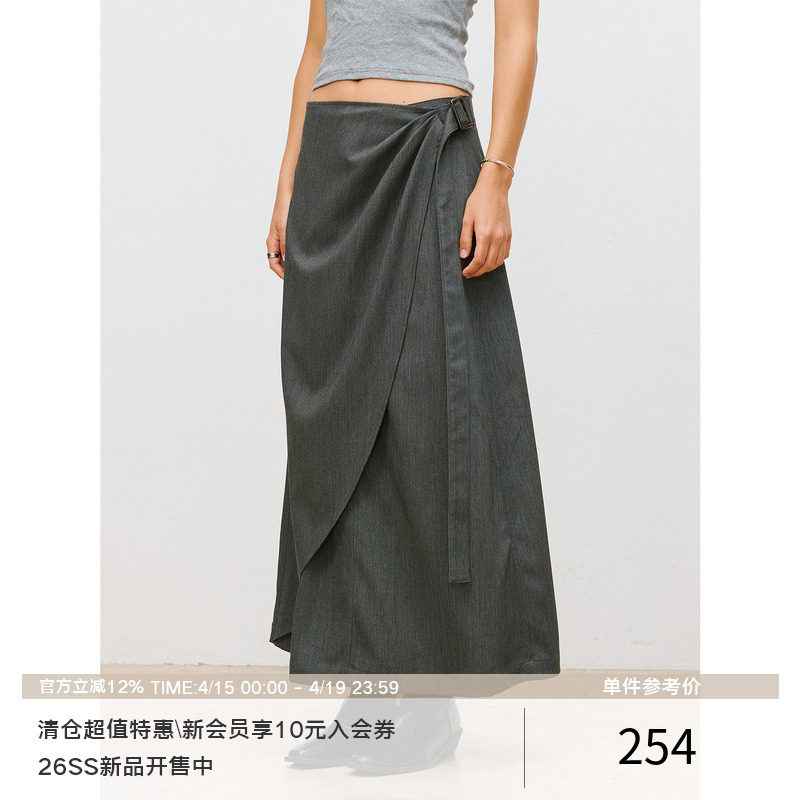--------------------- LR MADE 26SS 打褶活片 可调节飘带 仿麻感TR半身微A字中长款裙子 【原售价】289元 【现售价】254元 【推荐理由】