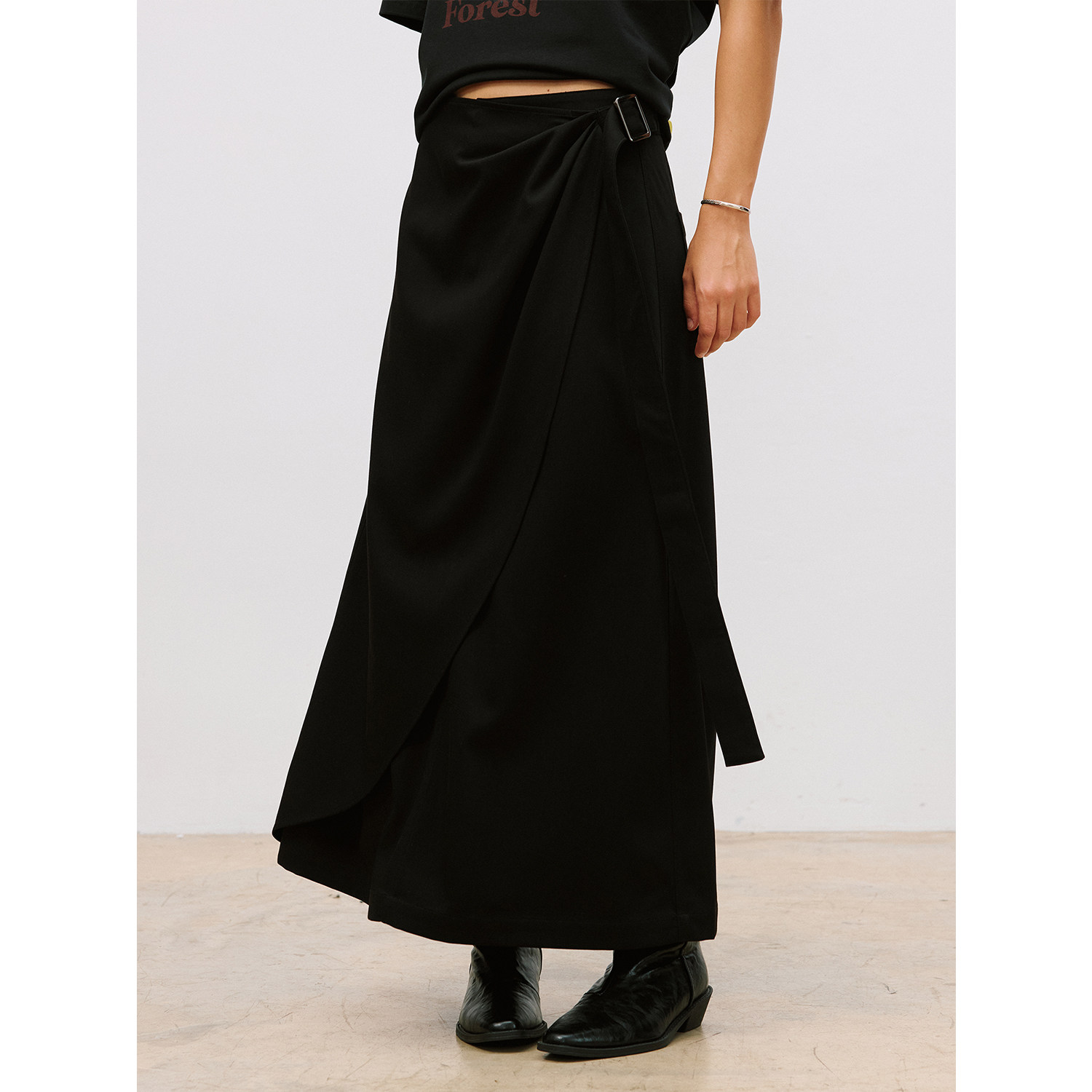 LR MADE 26SS 打褶活片 可调节飘带 仿麻感TR半身微A字中长款裙子