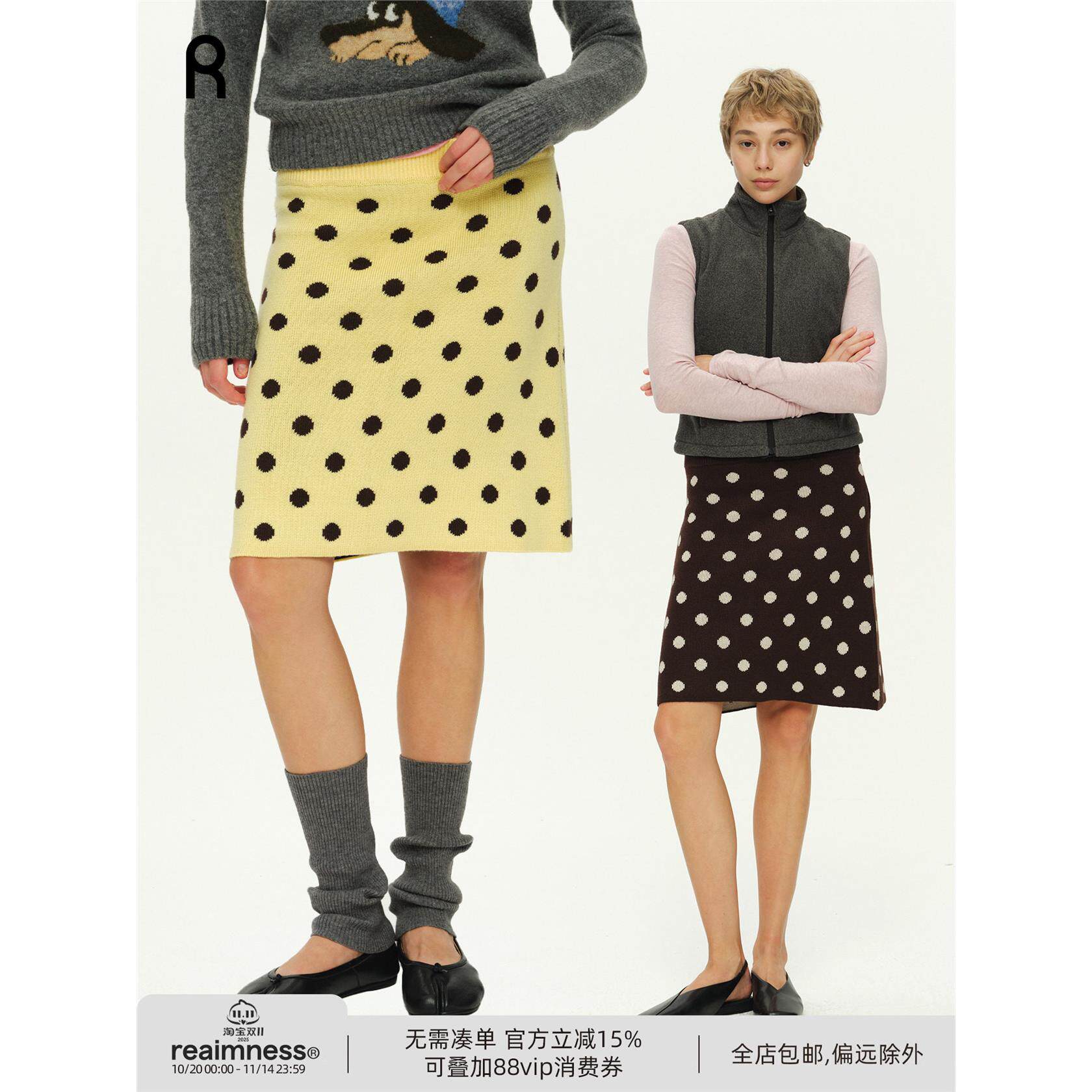 ReAimNess*波点毛织半身裙手工提花半裙女针织裙