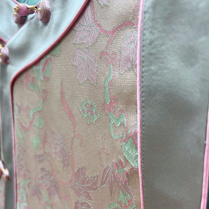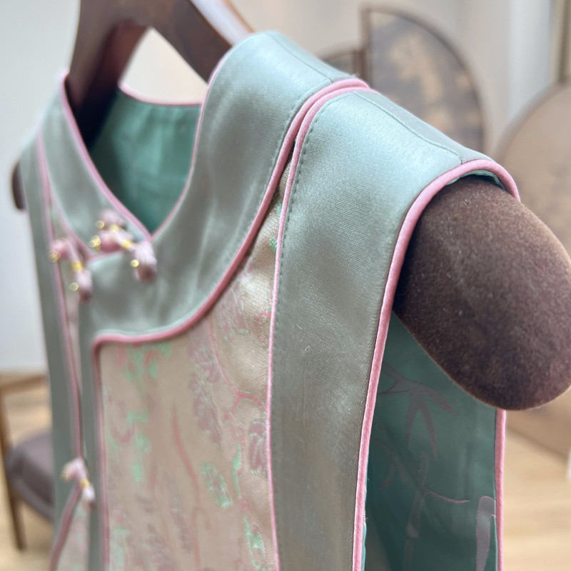 淘宝拉贝碧 福禄双至 桑蚕丝异色花罗 斜襟复古 复原款 如意头马甲