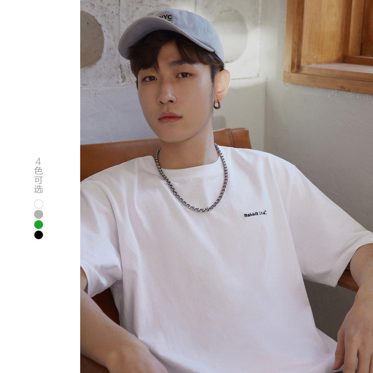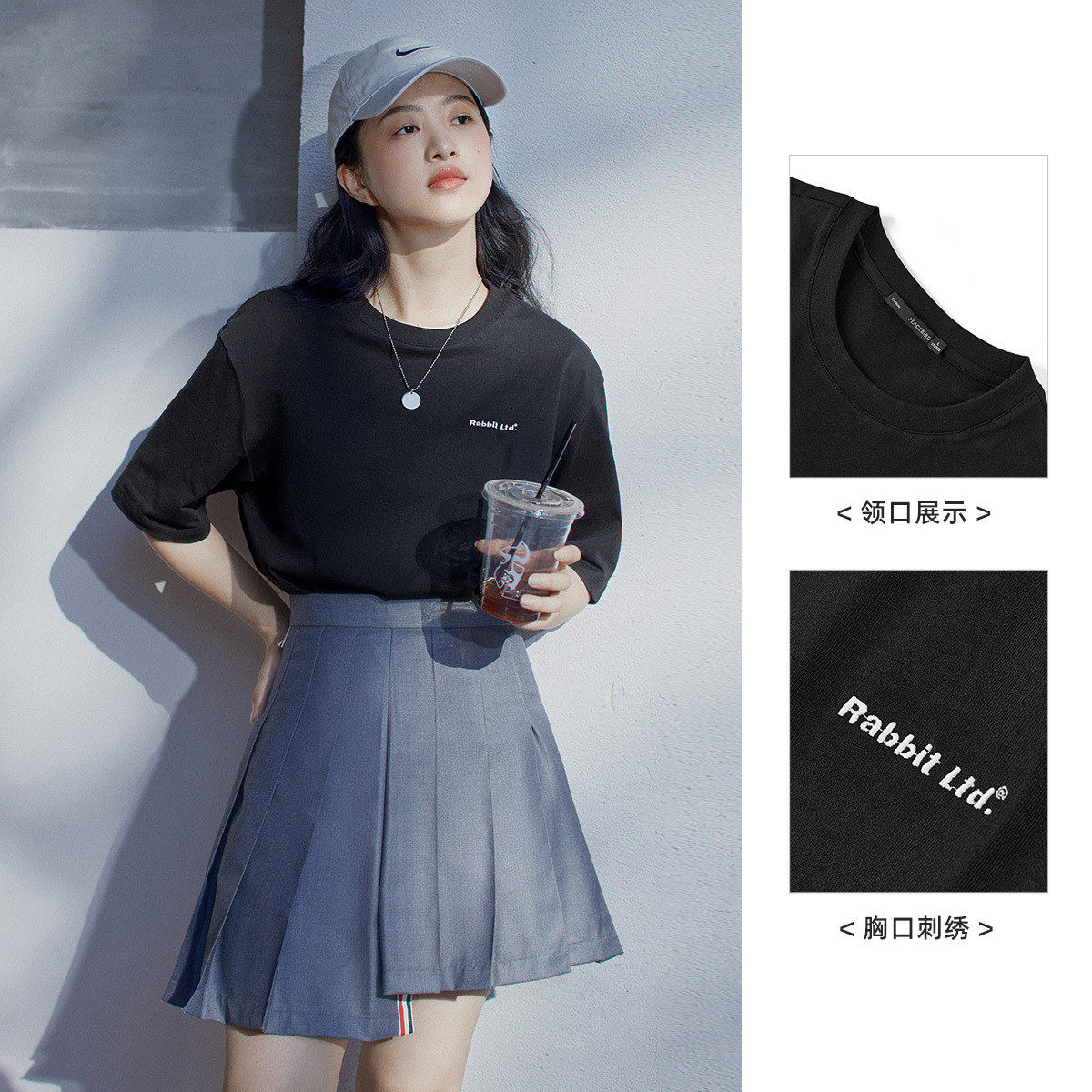 淘宝太平鸟男装 纯色短袖t恤男2024年夏新款宽松刺绣纯棉体恤打底衫