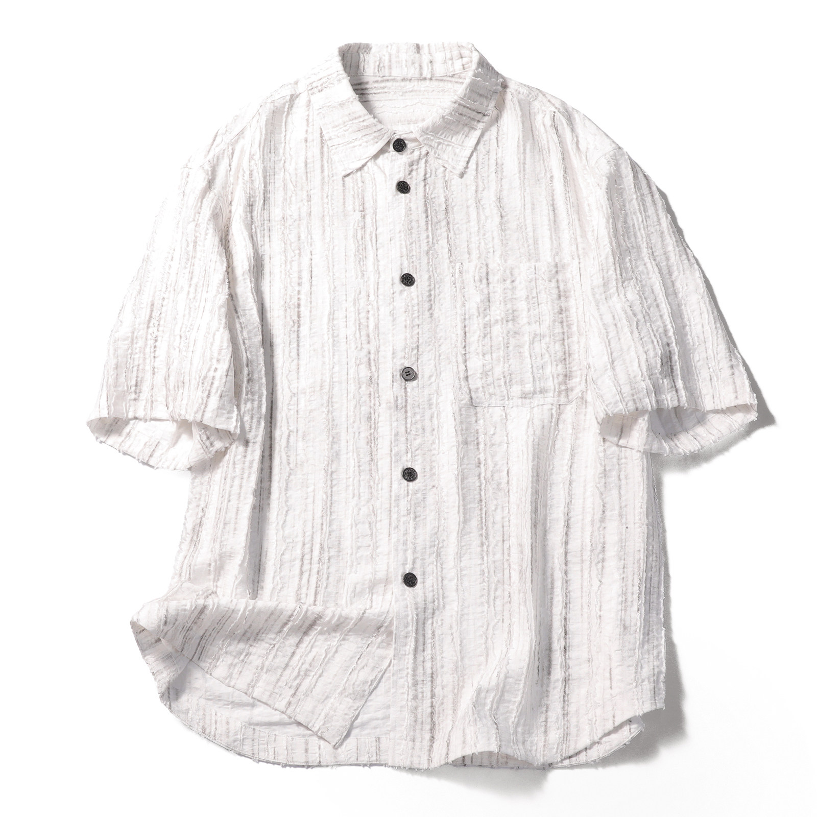 --------------------- 2025夏季新款男士户外休闲国潮痞帅褶皱条纹肌理感五分袖衬衫1194 【原售价】298元 【现售价】262元 【推荐理由】