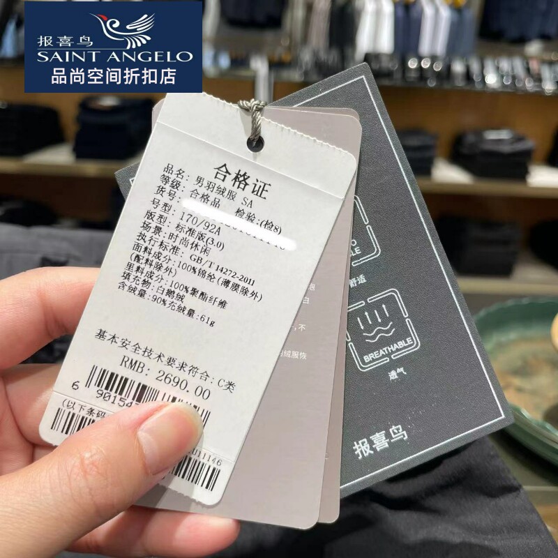 --------------------- 报喜鸟男士羽绒服一款三色时尚休闲标准版立领轻薄锁温透气白鹅绒 【原售价】2690元 【现售价】395元 【推荐理由】