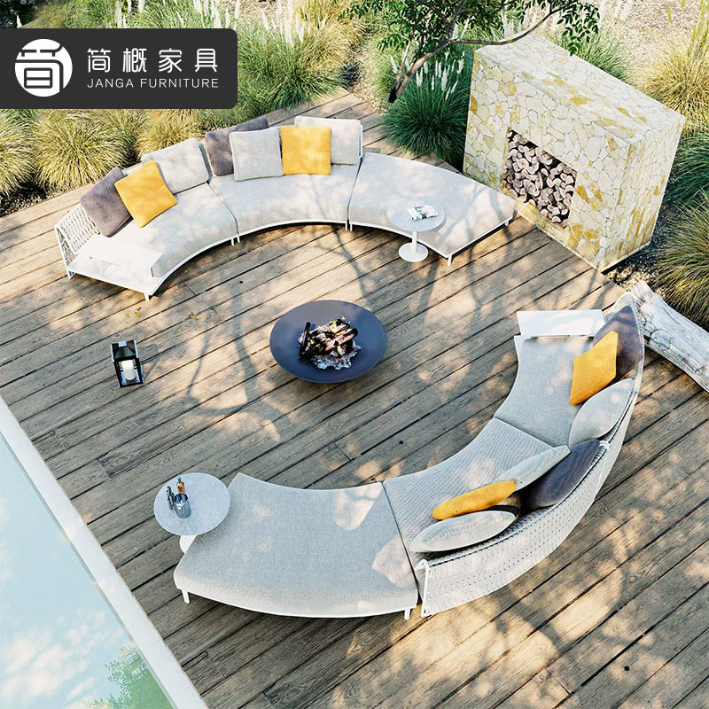 淘宝户外别墅庭院弧形沙发露台花园藤编家具组合防水防晒酒店民宿沙发