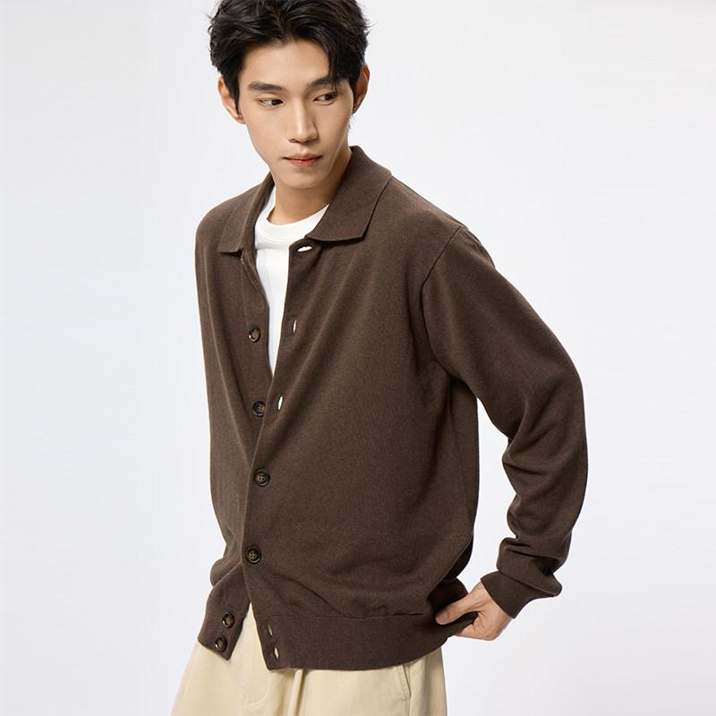 TUTM男装 【羊绒混纺】 薄款翻领开衫毛衣男春秋季休闲针织衫外套