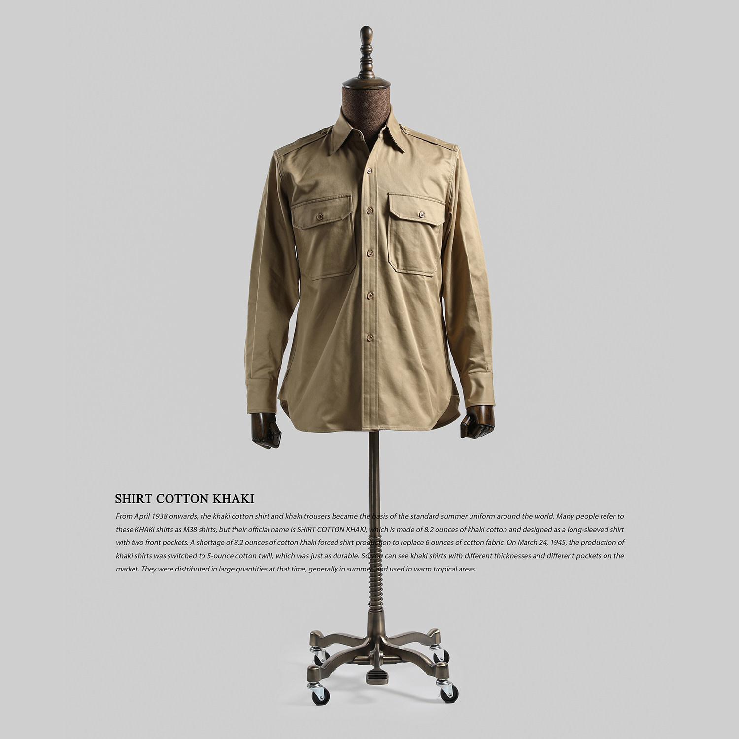 --------------------- GIZEMO 二战经典卡其色纯棉斜纹布 M38衬衫 KHAKI 飞行员衬衣 【原售价】888元 【现售价】587元 【推荐理由】