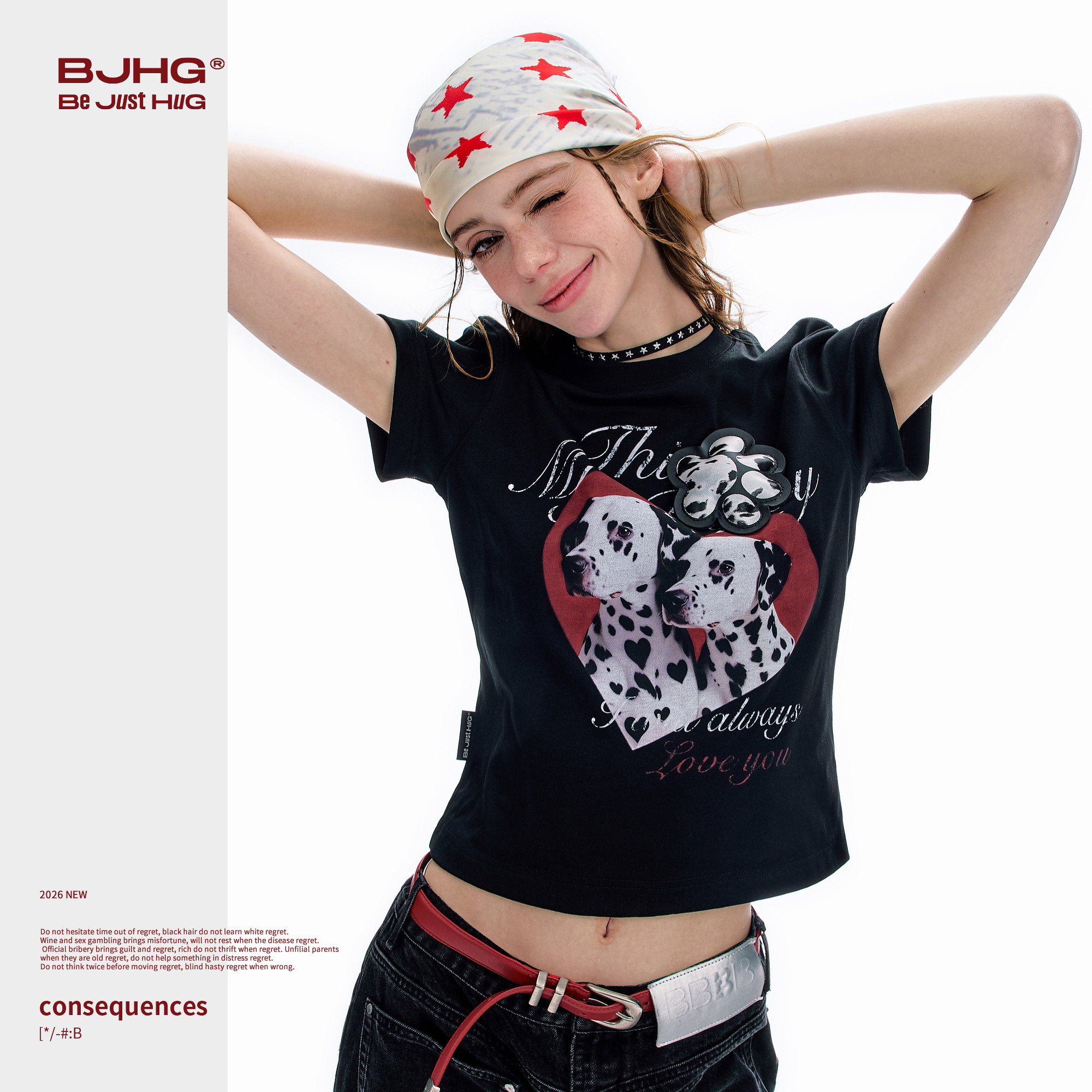 BJHG不计后果趣味凉感短袖T恤女装夏季修身显瘦上衣抗菌印花半袖