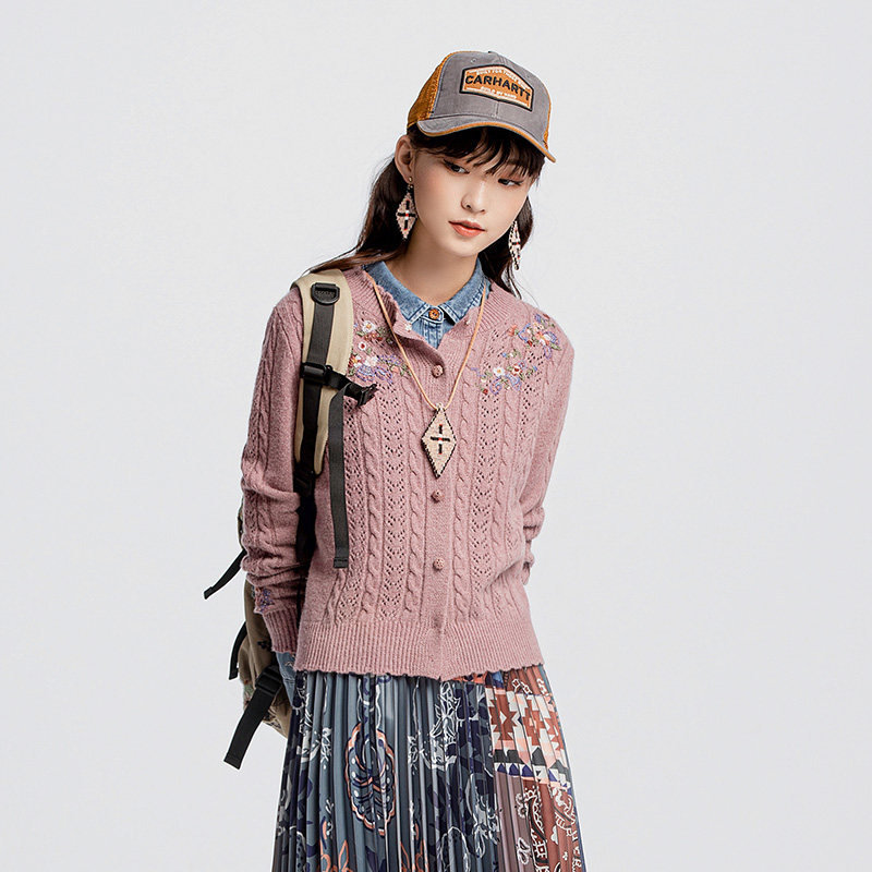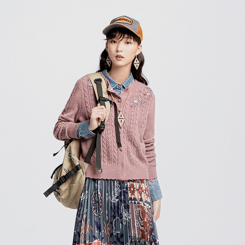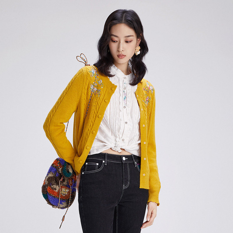 --------------------- 渔牌女装针织衫女新款春秋镂空绣花休闲短款毛衣外套FGGC3612 --------------------- --------------------- 【原价】1676元 【券后价】522元