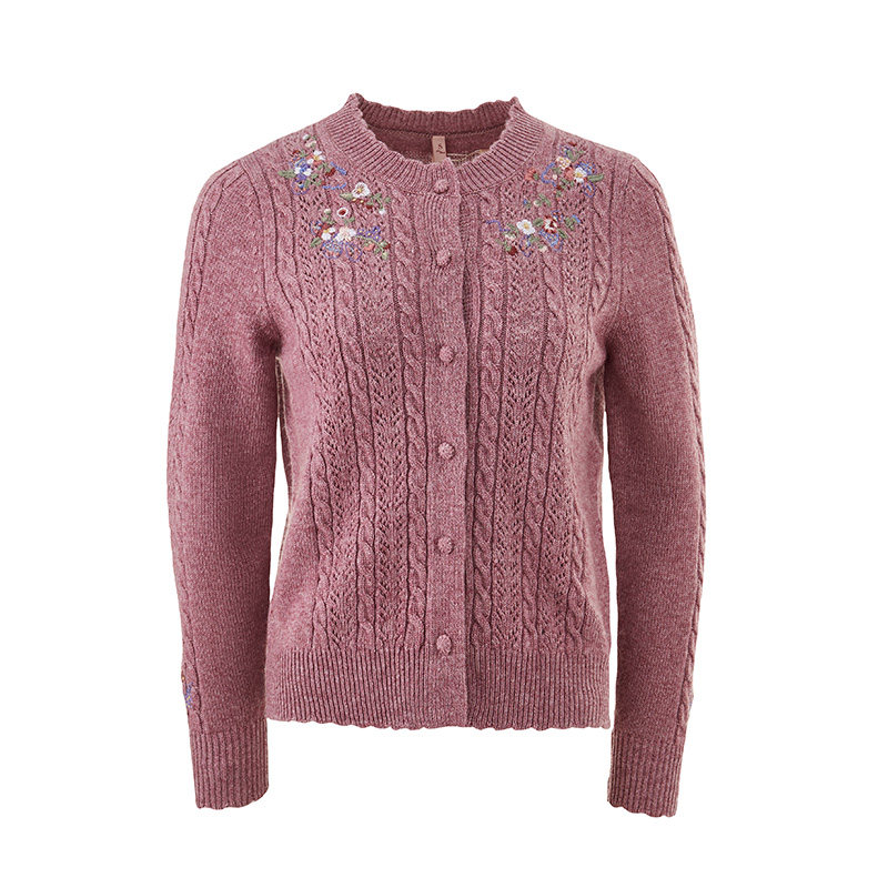 渔牌女装针织衫女新款春秋镂空绣花休闲短款毛衣外套FGGC3612