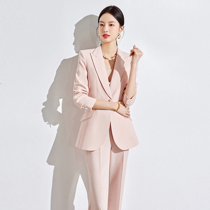 2026早春新款甜美淑女套装女柔和桃粉色西装上衣外套裤子高级韩版