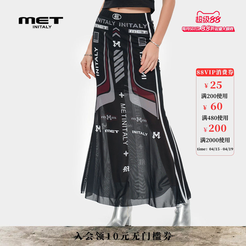淘宝METinitaly早春新款美式复古字母印花半身裙女高腰显瘦长裙子