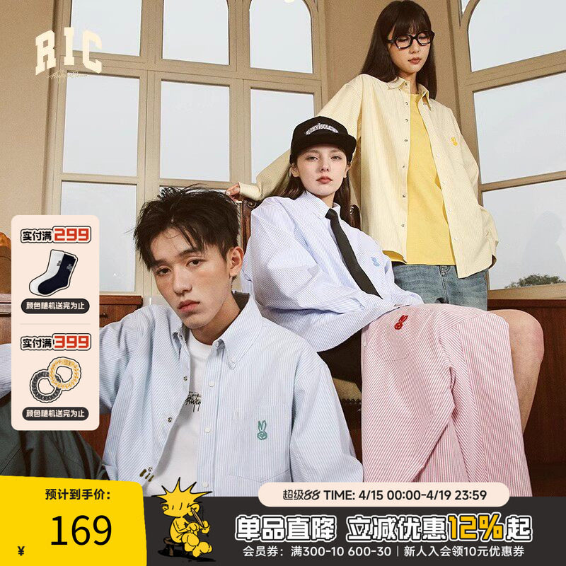 --------------------- RickyisClown粉色长袖条纹衬衫国潮流漩涡兔刺绣情侣百搭衬衣外套 --------------------- --------------------- 【原价】499元 【券后价】159元