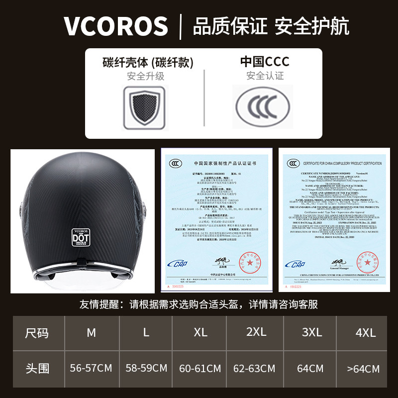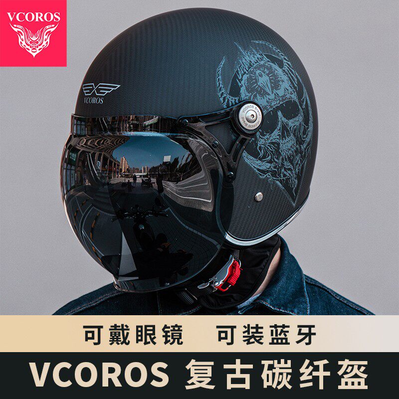 淘宝VCOROS碳纤维复古摩托车头盔男玻璃钢4XL大头围机车头盔四季通用