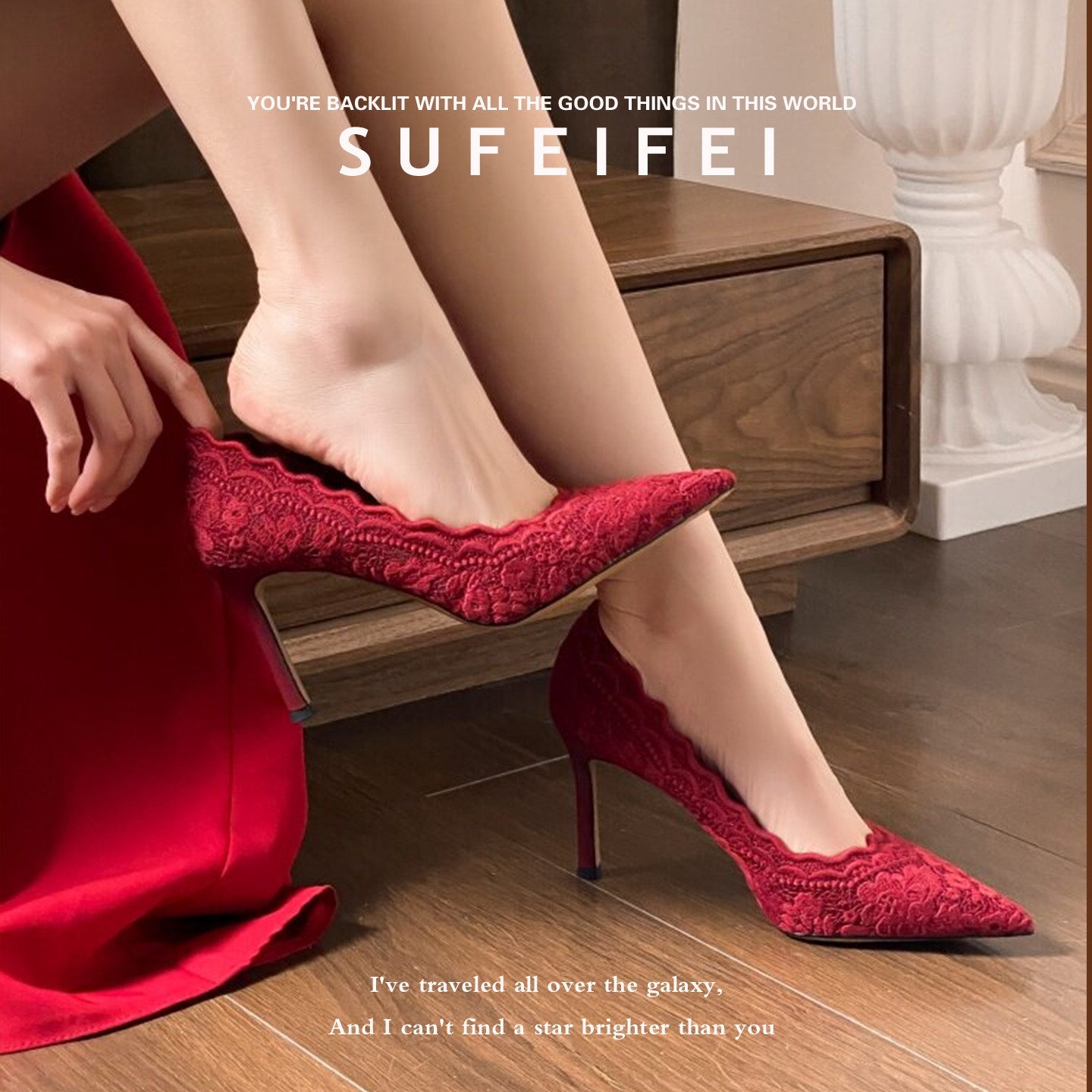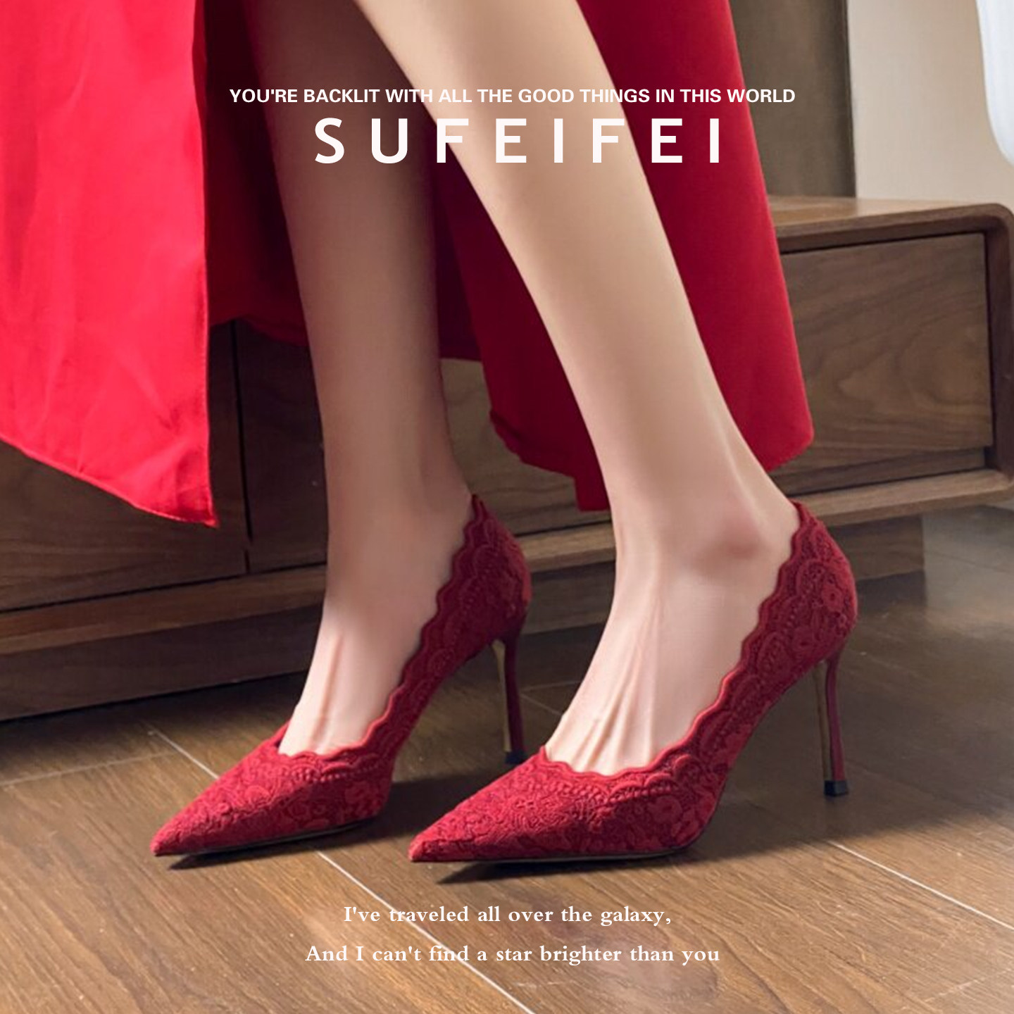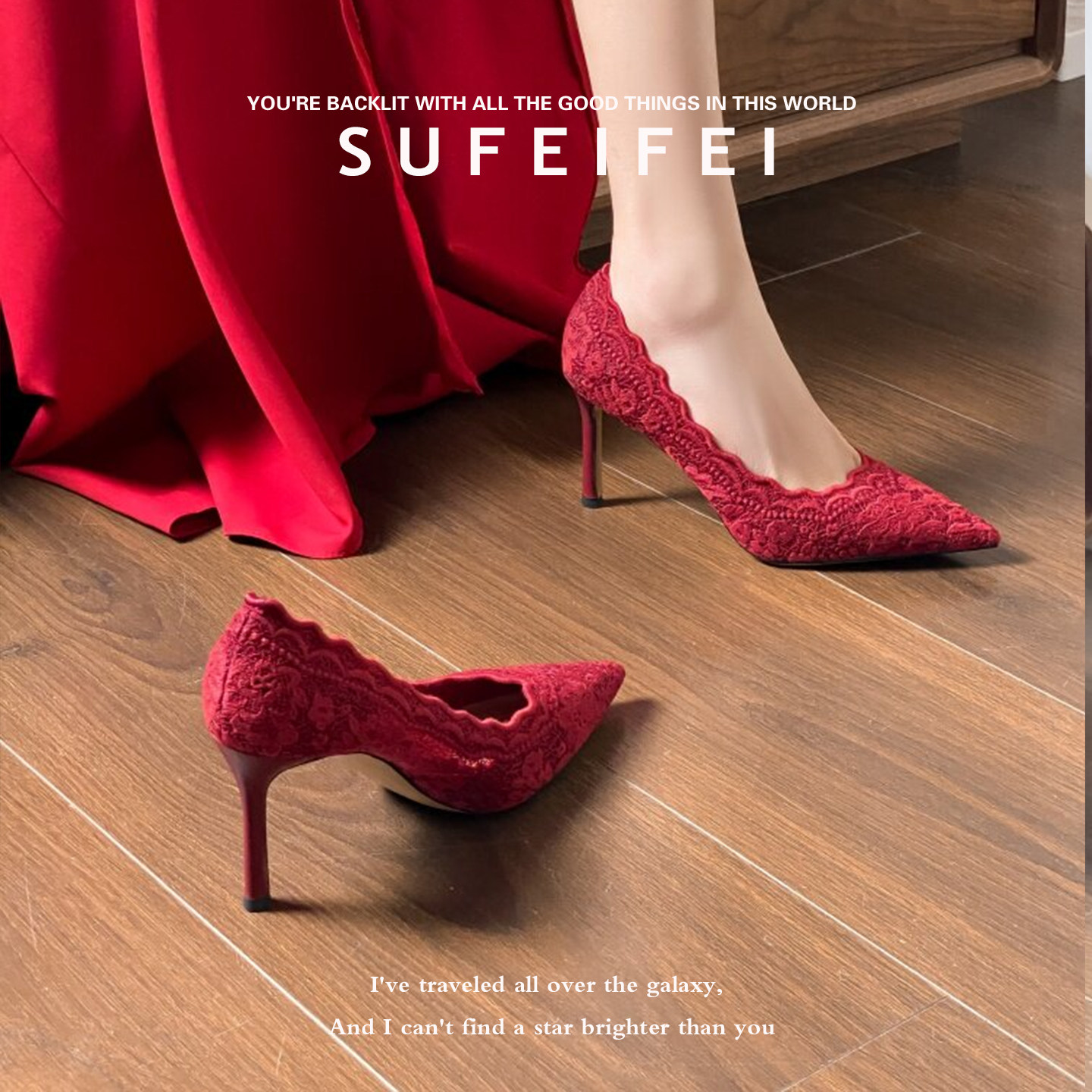 淘宝羊皮版~古典优雅酒红色蕾丝尖头高跟鞋女细跟婚鞋新娘鞋浅口单鞋
