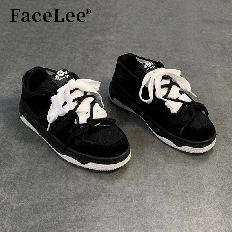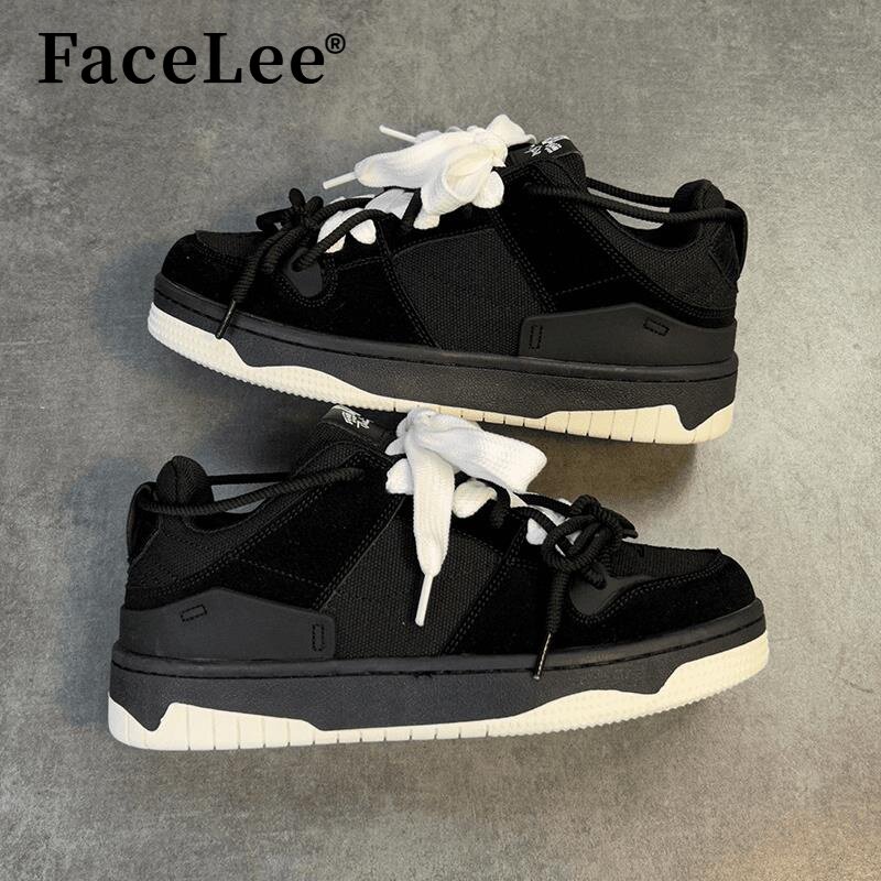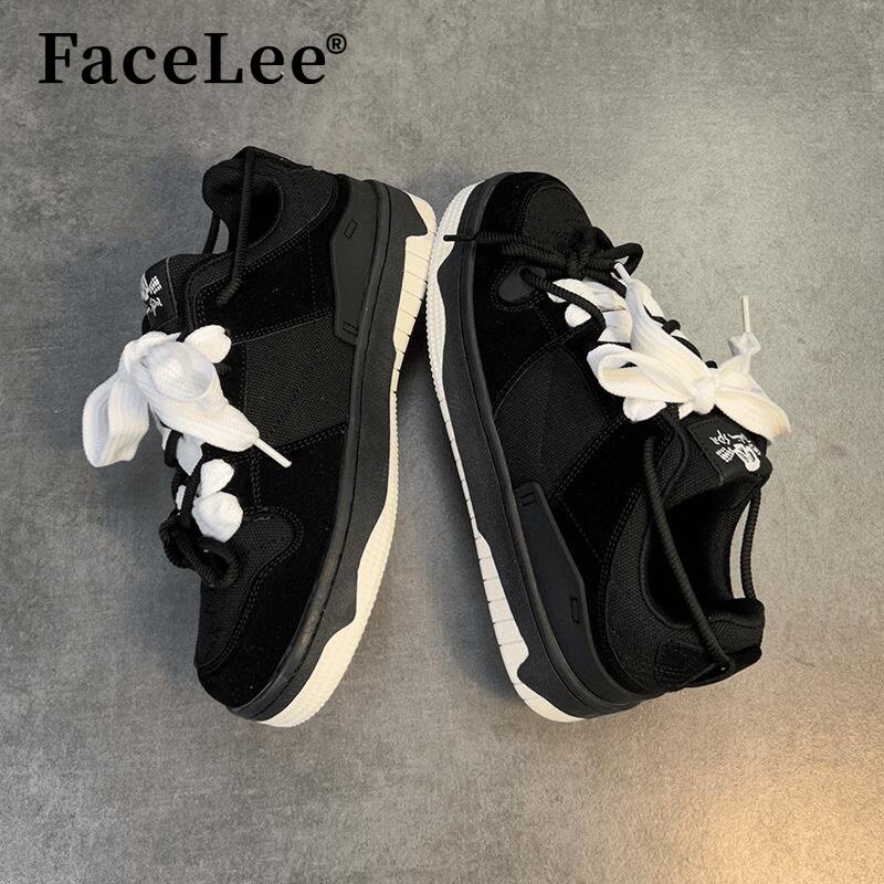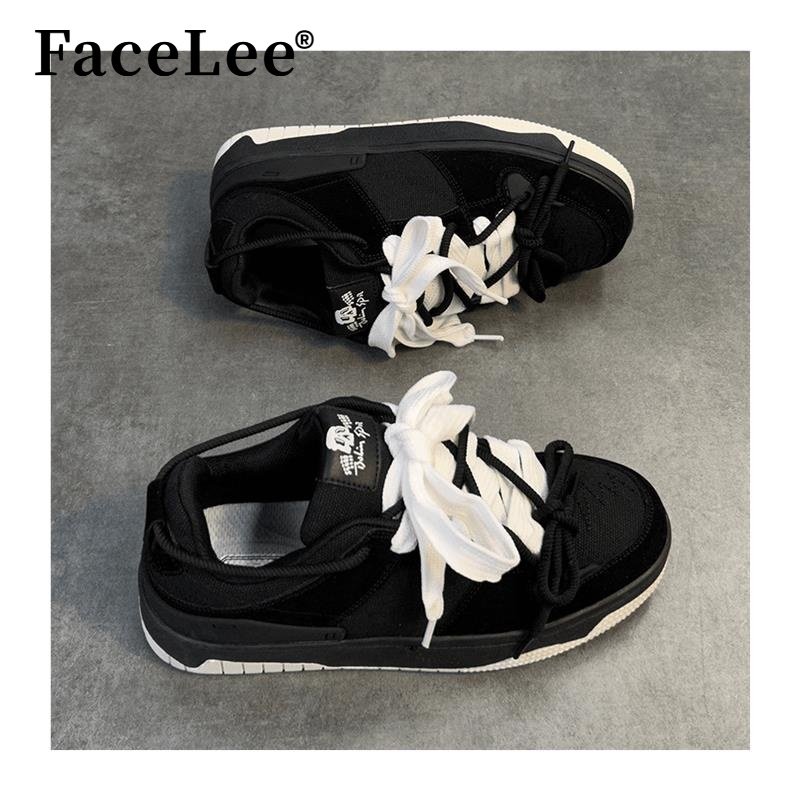 FaceLee日本设计师板鞋男春季休闲厚底潮流黑色面包鞋男透气鞋潮