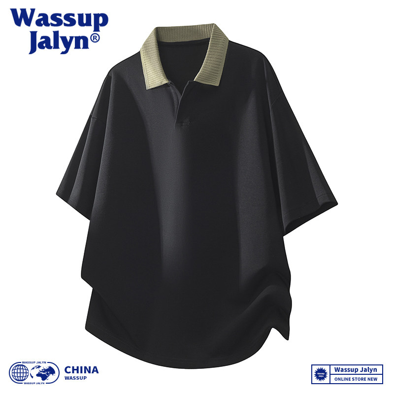 WASSUP JALYN夏季撞色翻领男士polo衫宽松休闲下摆潮流短袖上衣潮
