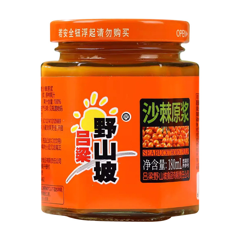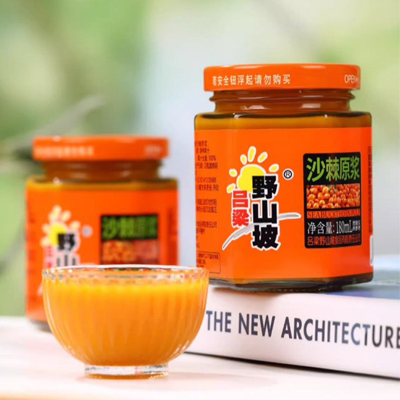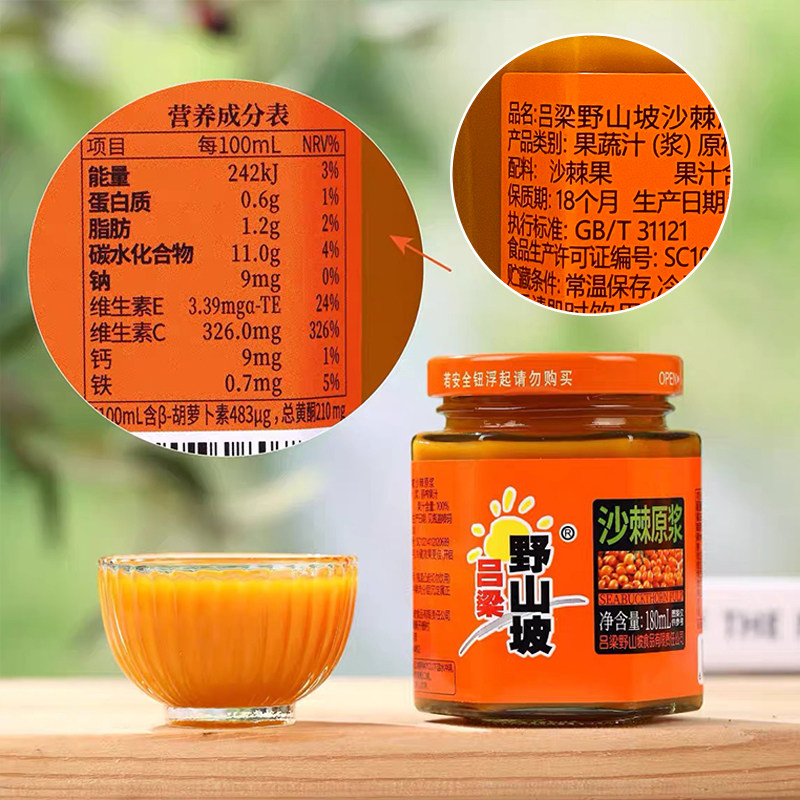 淘宝沙棘原浆正品吕梁野山坡沙棘汁180ml玻璃瓶装生榨小果沙棘果汁
