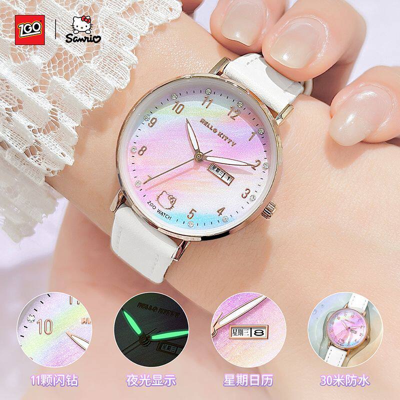 Hellokitty手表女学生 双日历韩版初高中考试专用石英表夜光