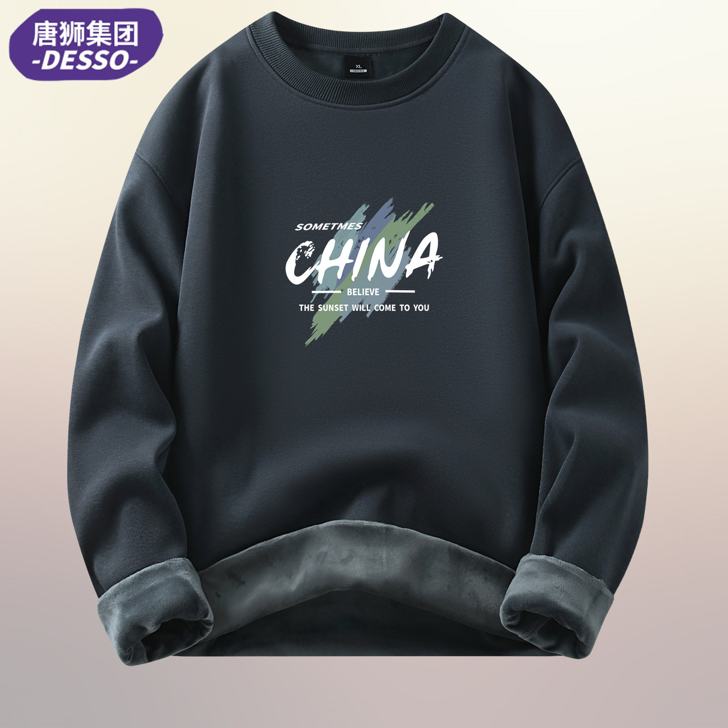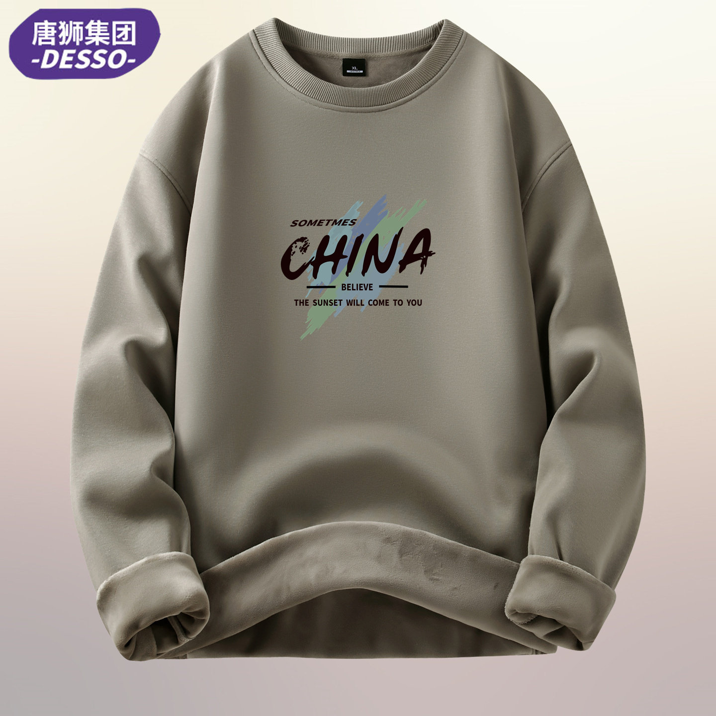 唐狮集团DESSO纯棉卫衣男圆领大码打底衫潮牌秋冬长袖男宽松上衣