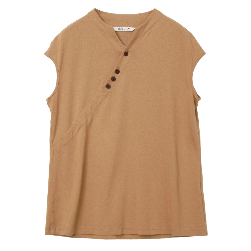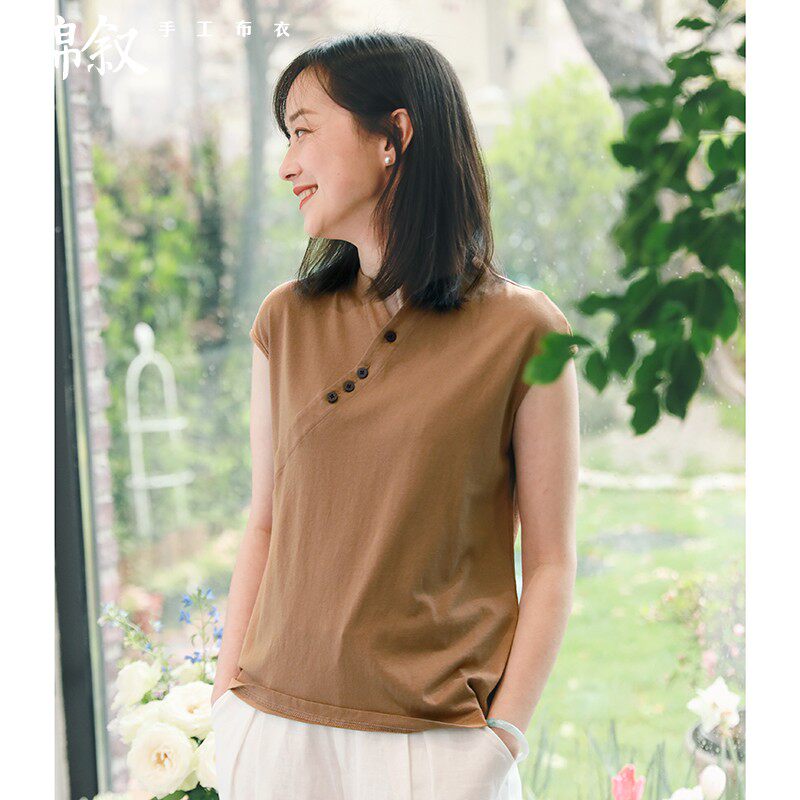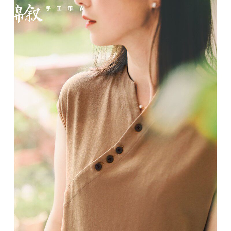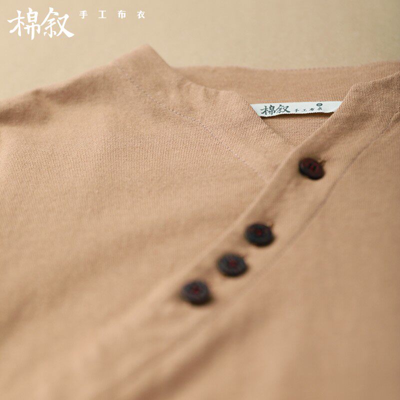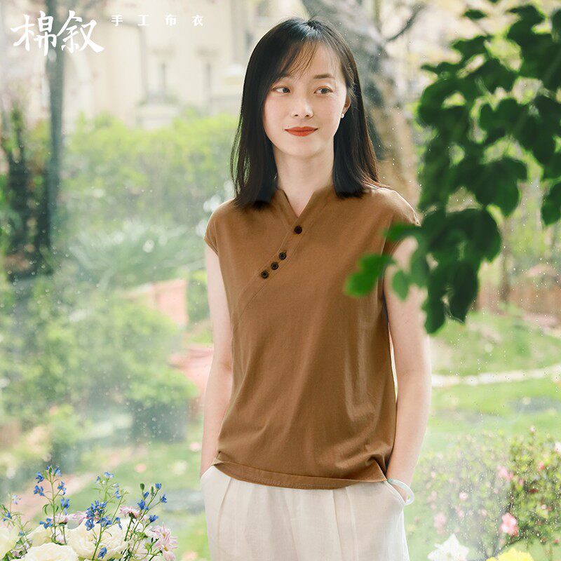 《告别价89》禅意新中式文艺上衣纯色知性优雅V领短袖T恤12023