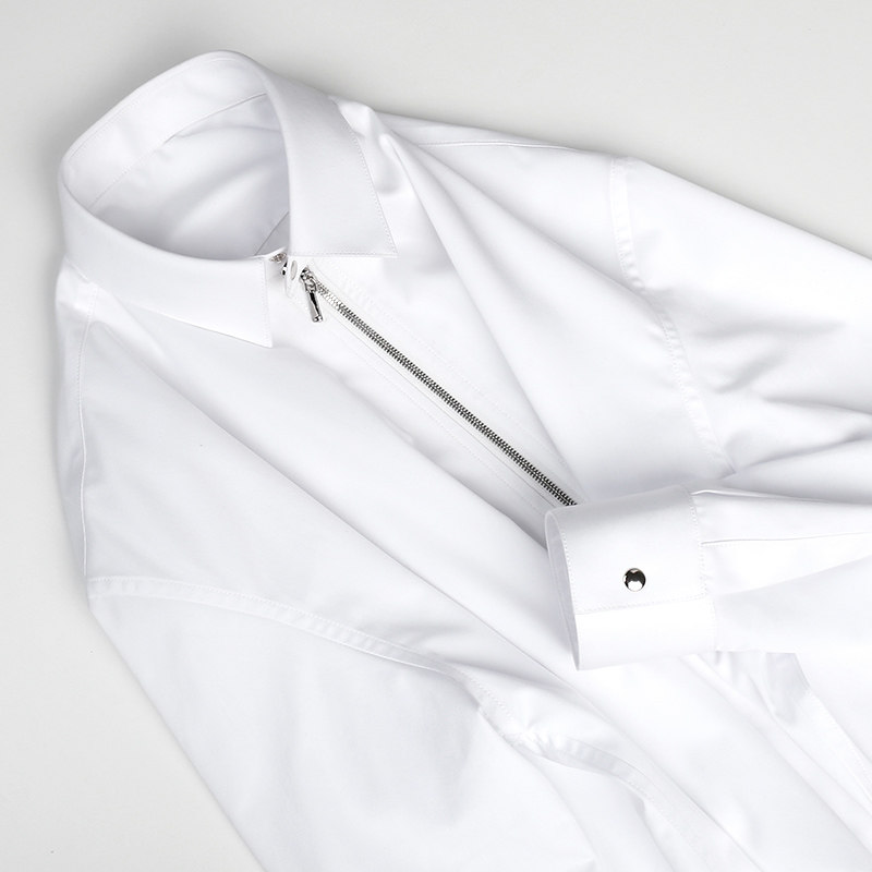 --------------------- MUSLUN纯色新款免烫的个性拉链宽松休闲长袖白衬衣 【原售价】398元 【现售价】350元 【推荐理由】