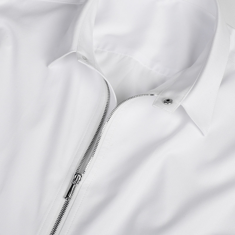 MUSLUN纯色新款免烫的个性拉链宽松休闲长袖白衬衣