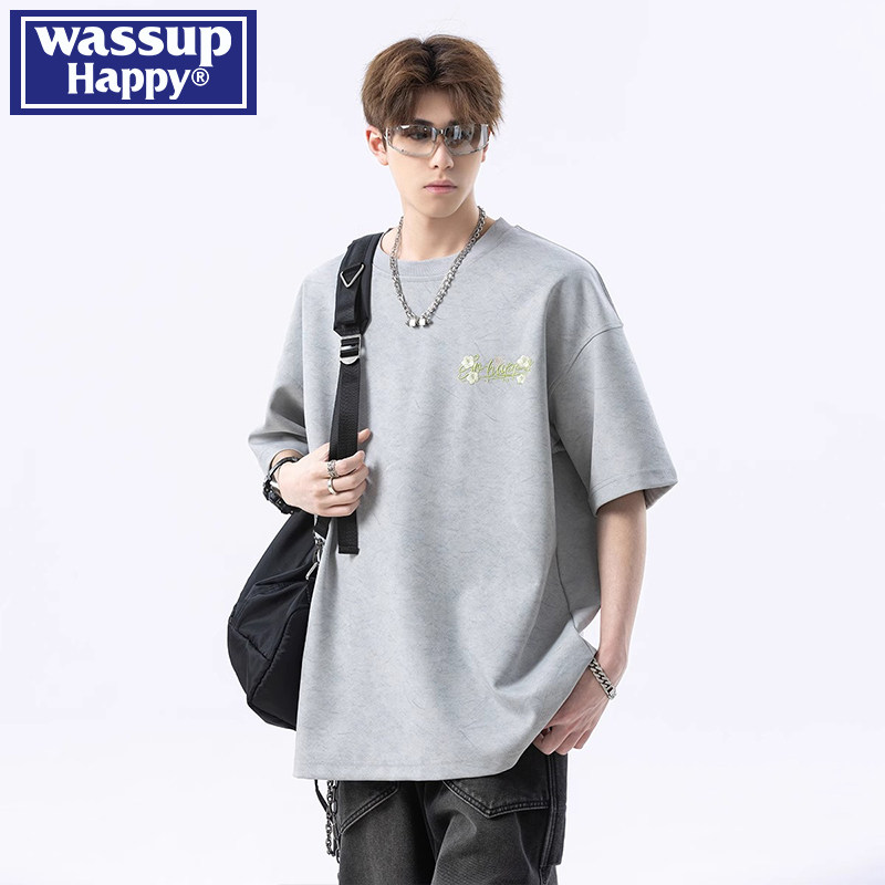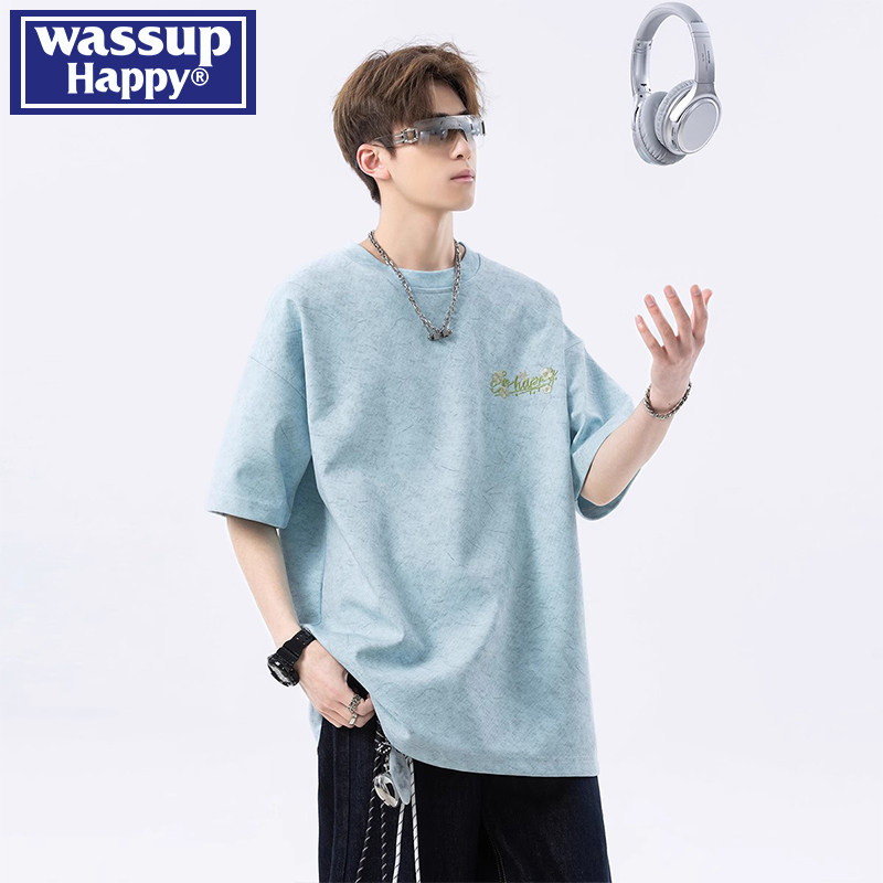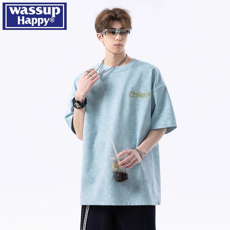 --------------------- wassup happy扎染刺绣短袖t恤男夏季美式潮牌复古宽松百搭五分袖 【原售价】239元 【现售价】139元 【推荐理由】