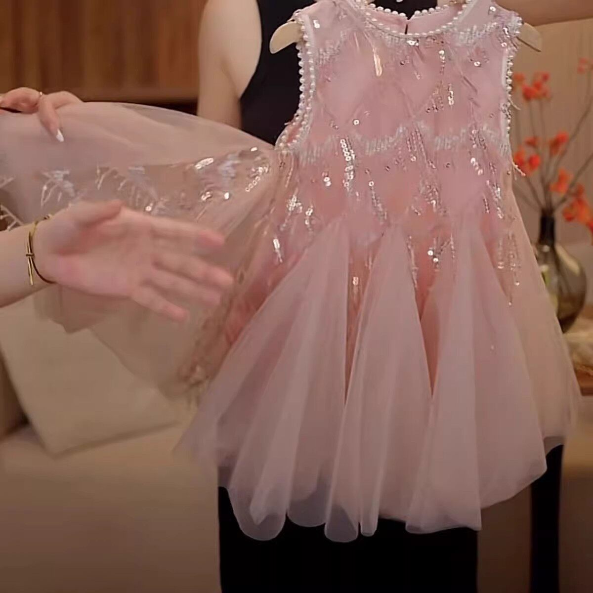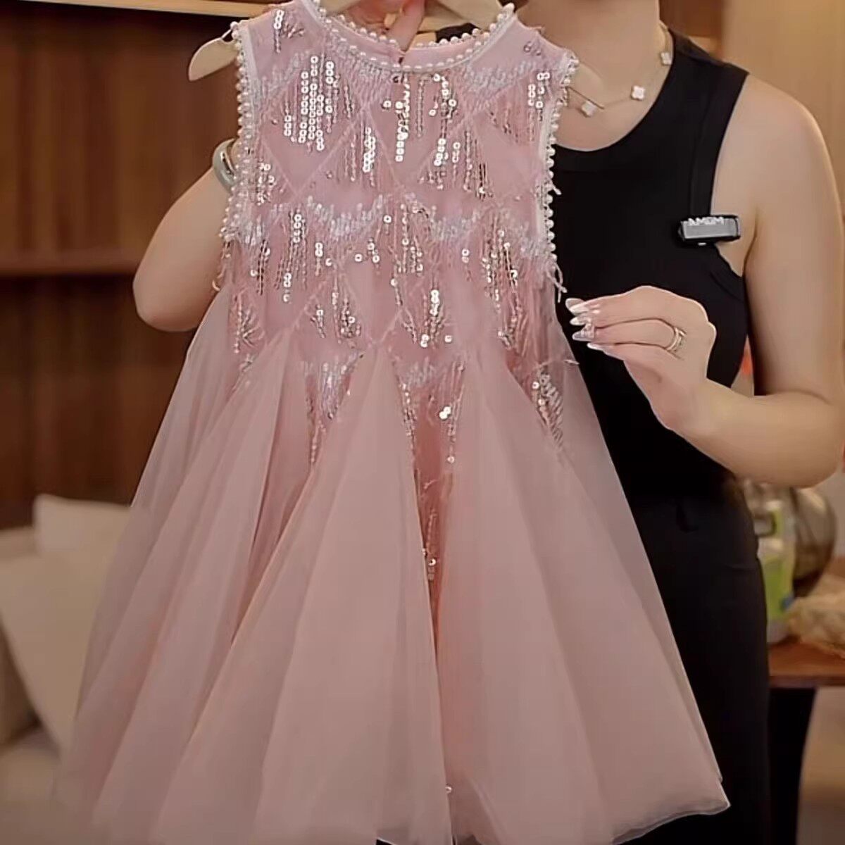 NEXT JANSO女孩网纱连衣裙2026夏季新款洋气礼服流苏亮片公主裙潮