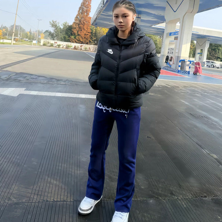 阿拉伯文刺绣设计感藏蓝微喇裤显瘦运动百搭休闲裤长裤卫裤男女潮