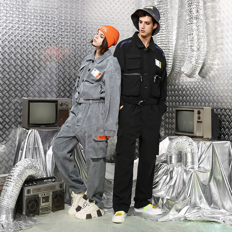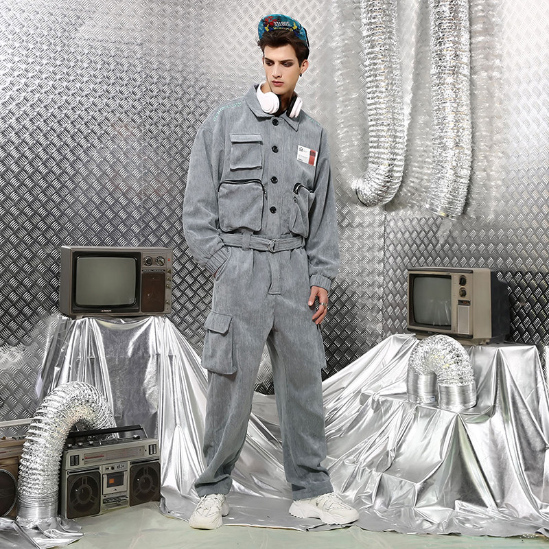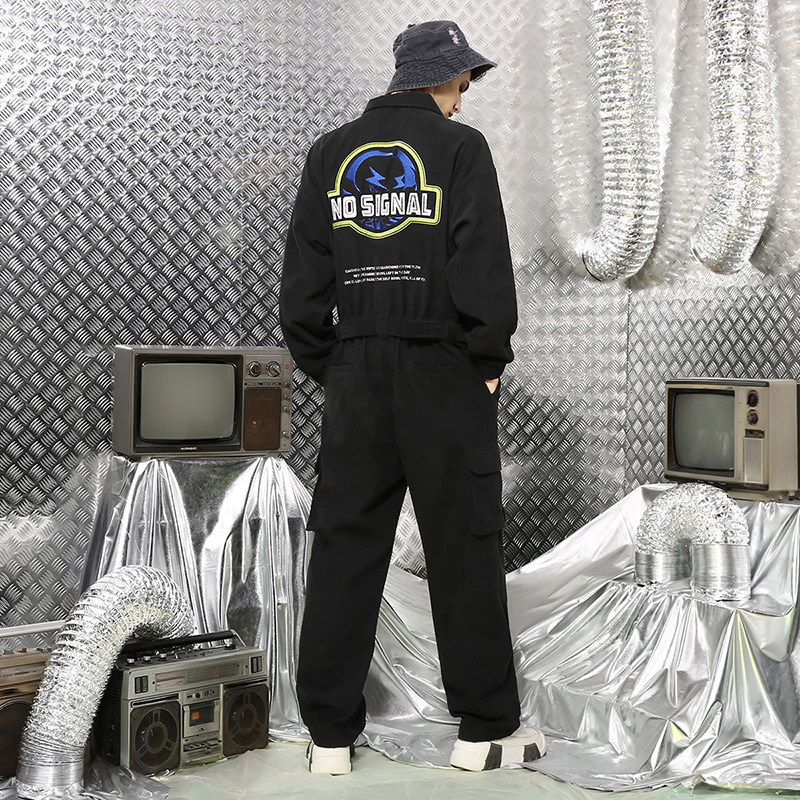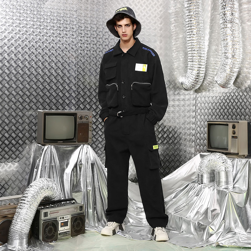 GENANX闪电潮牌连体裤长袖男个性秋季新款帅气时尚排扣工装连体裤