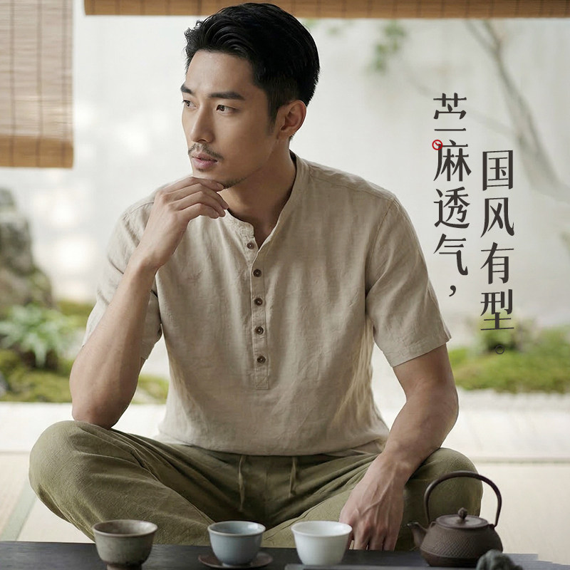 --------------------- 楠唐装男中国风男装苎麻t恤男短袖全麻上衣宽松大码男体恤薄午粒 【原售价】428元 【现售价】225元 【推荐理由】