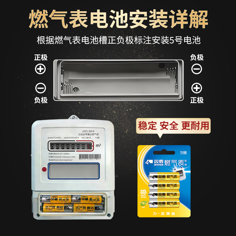 双鹿燃气表电池煤气表电池天然气表水表5号电池碱性1.5v五号电池高能AA LR6电池天然气表燃气灶不漏液电池