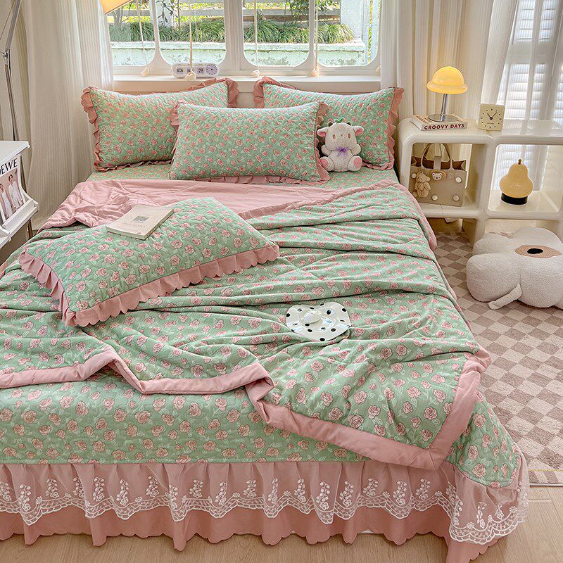 淘宝韩版泡泡棉夏被床盖四件s套纯棉夏凉被全棉床罩可机V洗空调被薄被