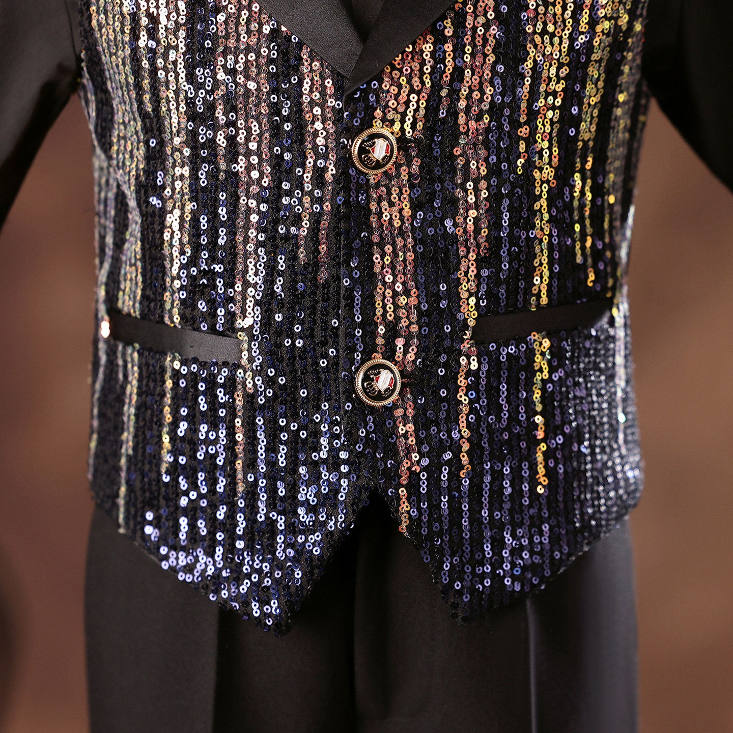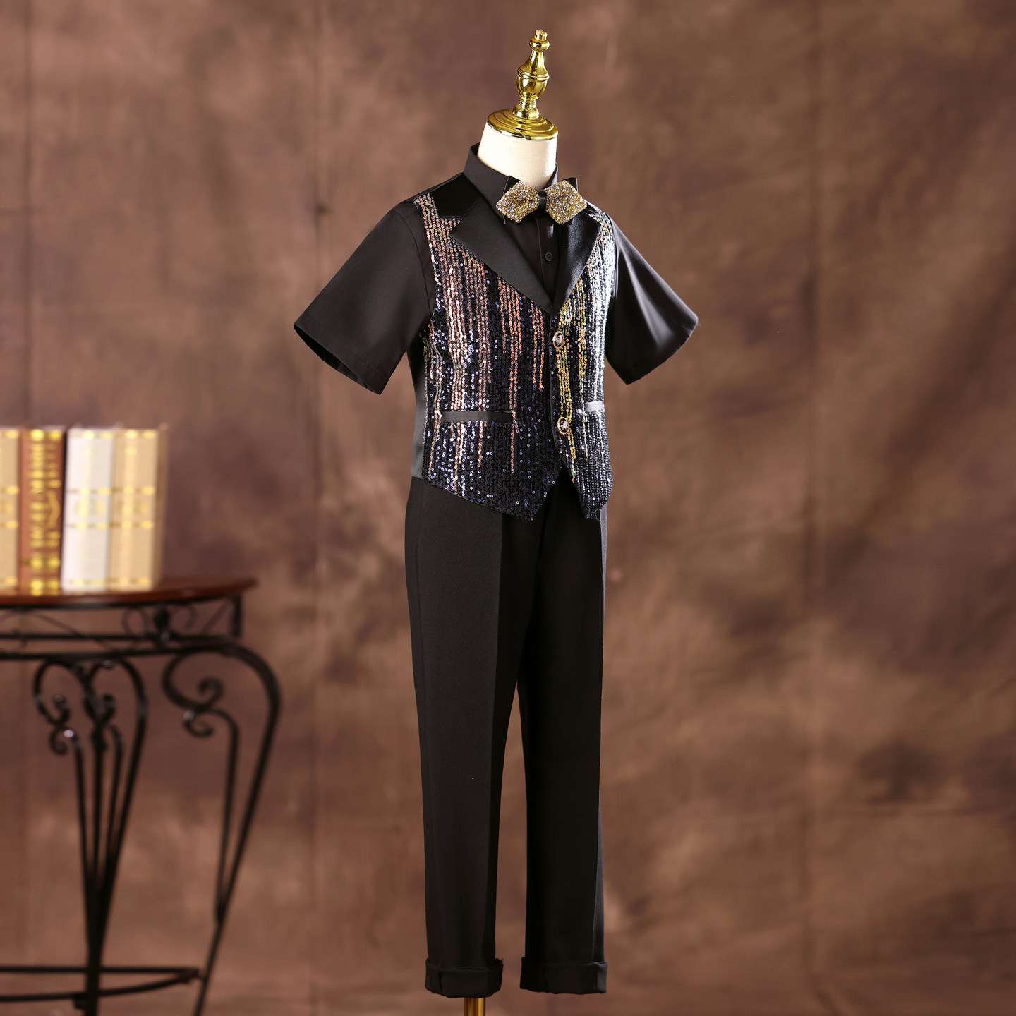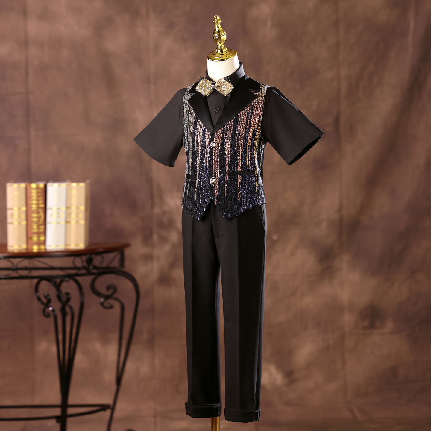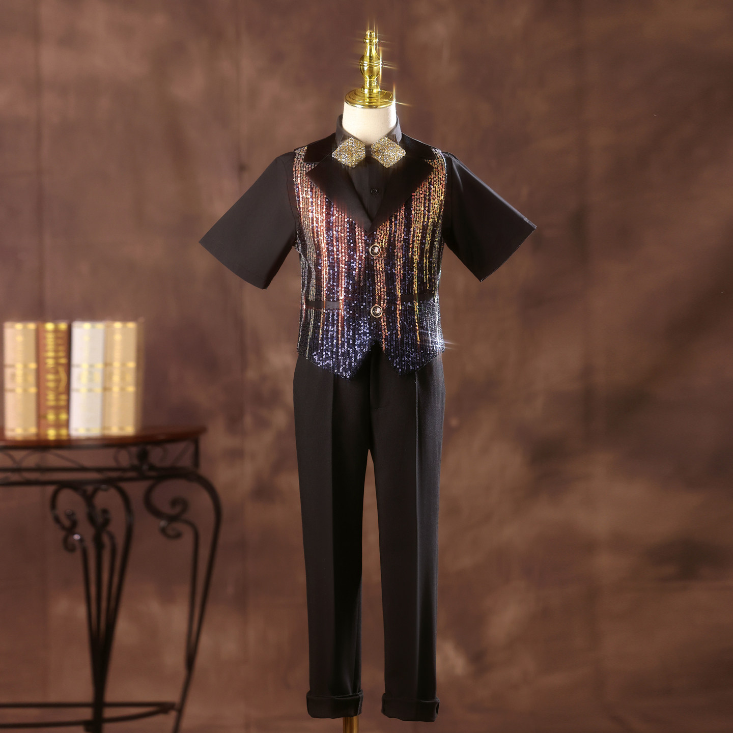 --------------------- 男童礼服幻彩亮片超闪生日唱歌主持人走秀潮服中大童钢琴演出服夏 【原售价】599元 【现售价】299元 【推荐理由】
