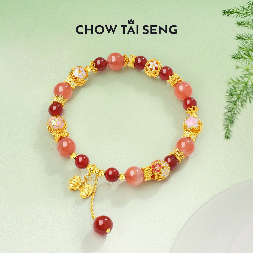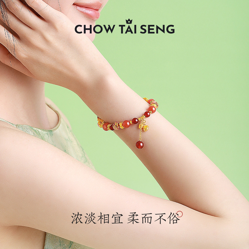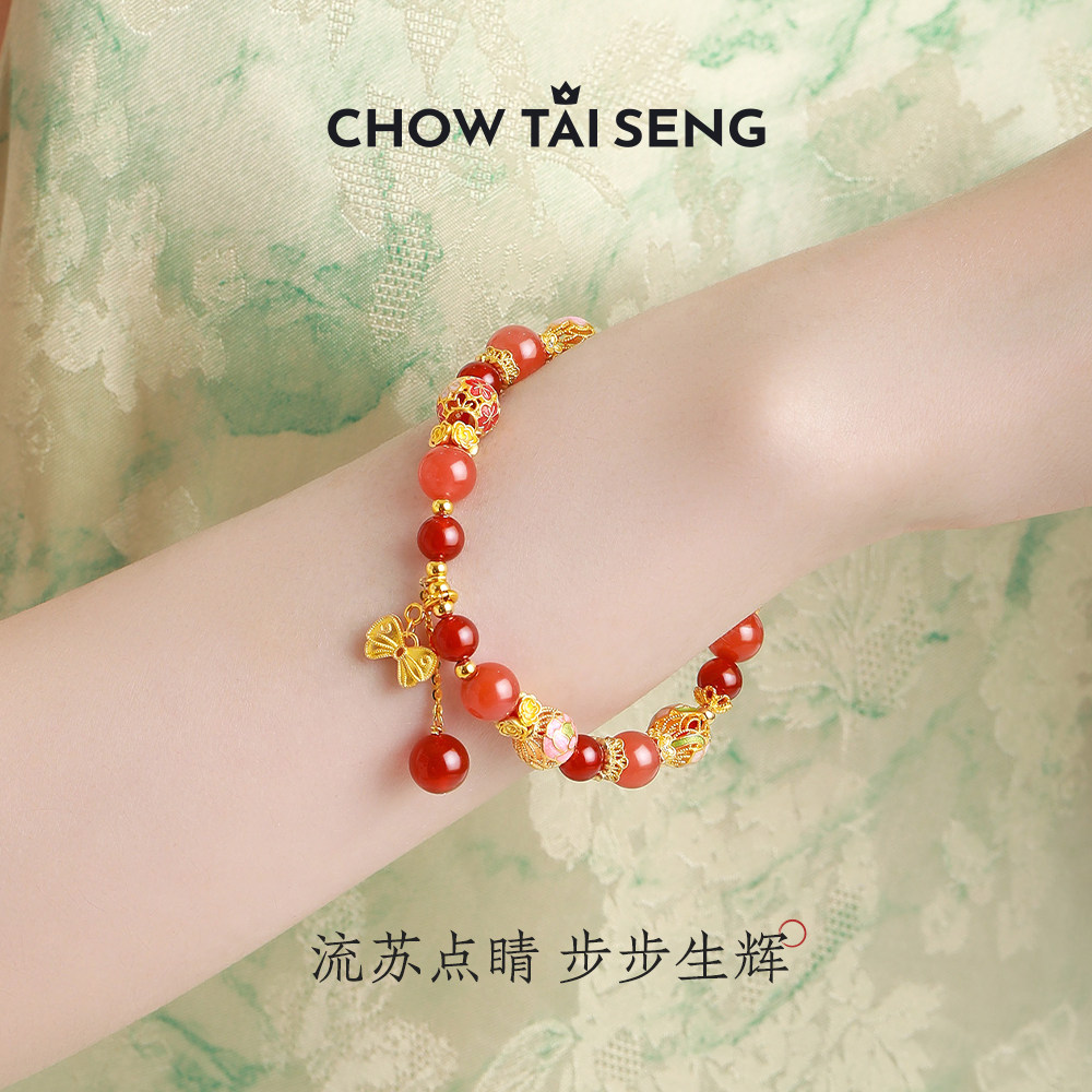 周大生朱砂痣国潮银手串玉髓绣球流光手链国风手饰生日礼物送女友