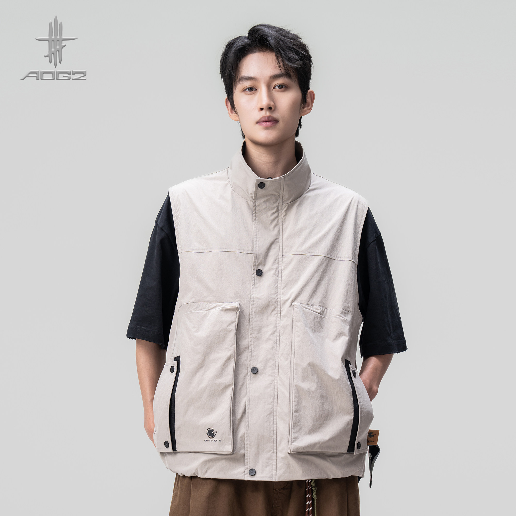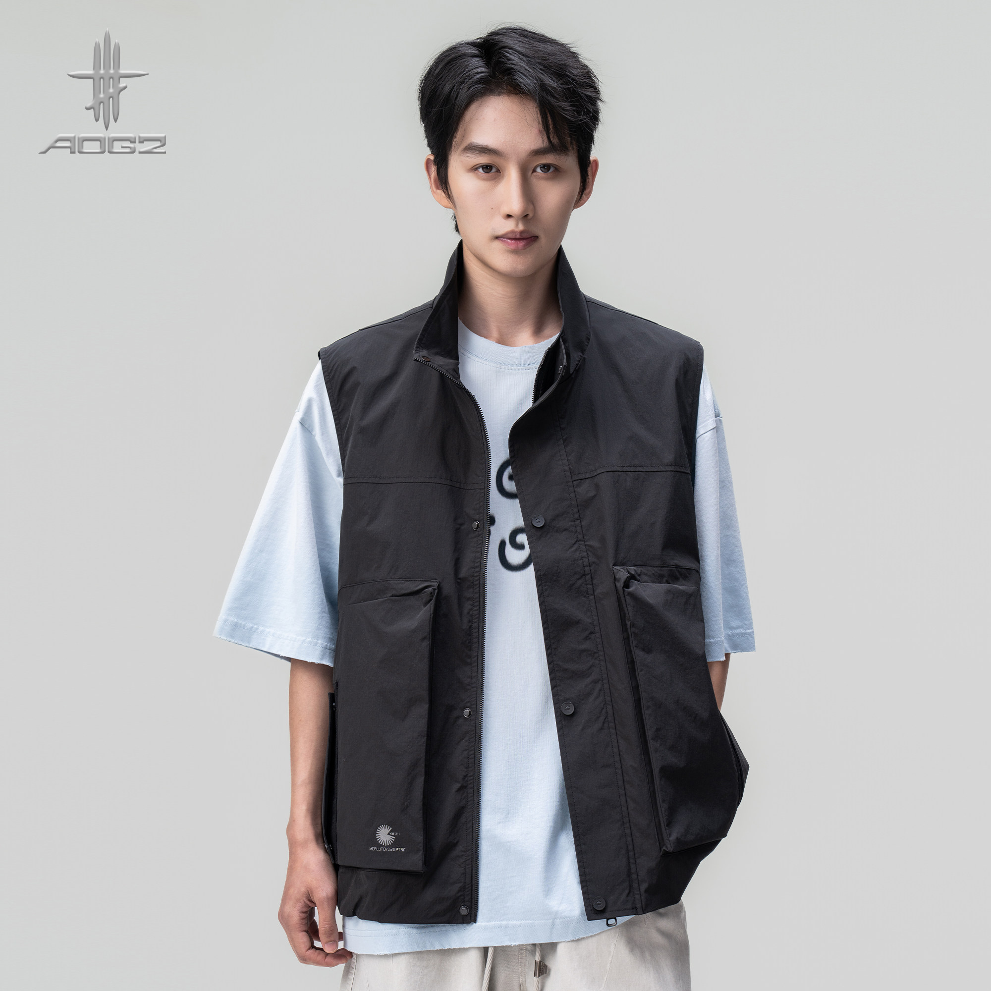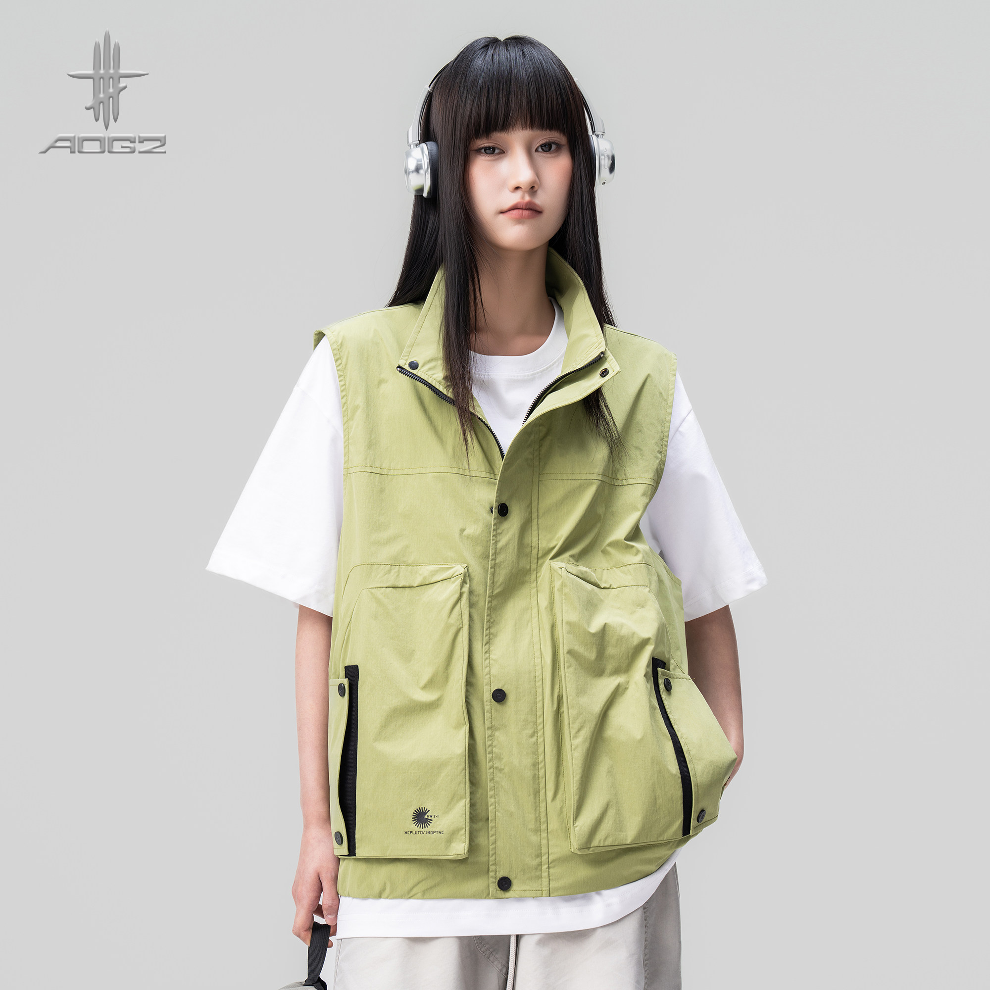 AOGZ美式立领机能风马甲男女2026春夏新款户外无袖坎肩背心外套潮