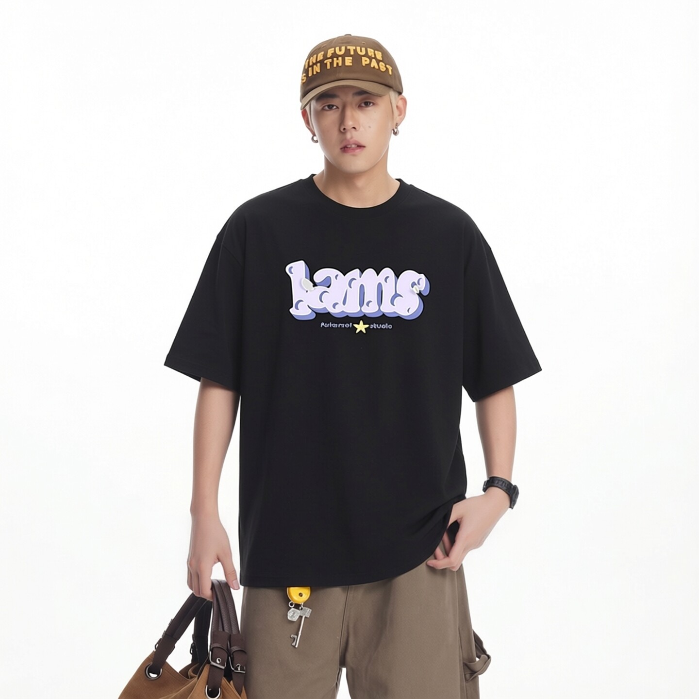 美式复古字母印花短袖T恤男女街头休闲风夏季新款凉感防晒上衣09